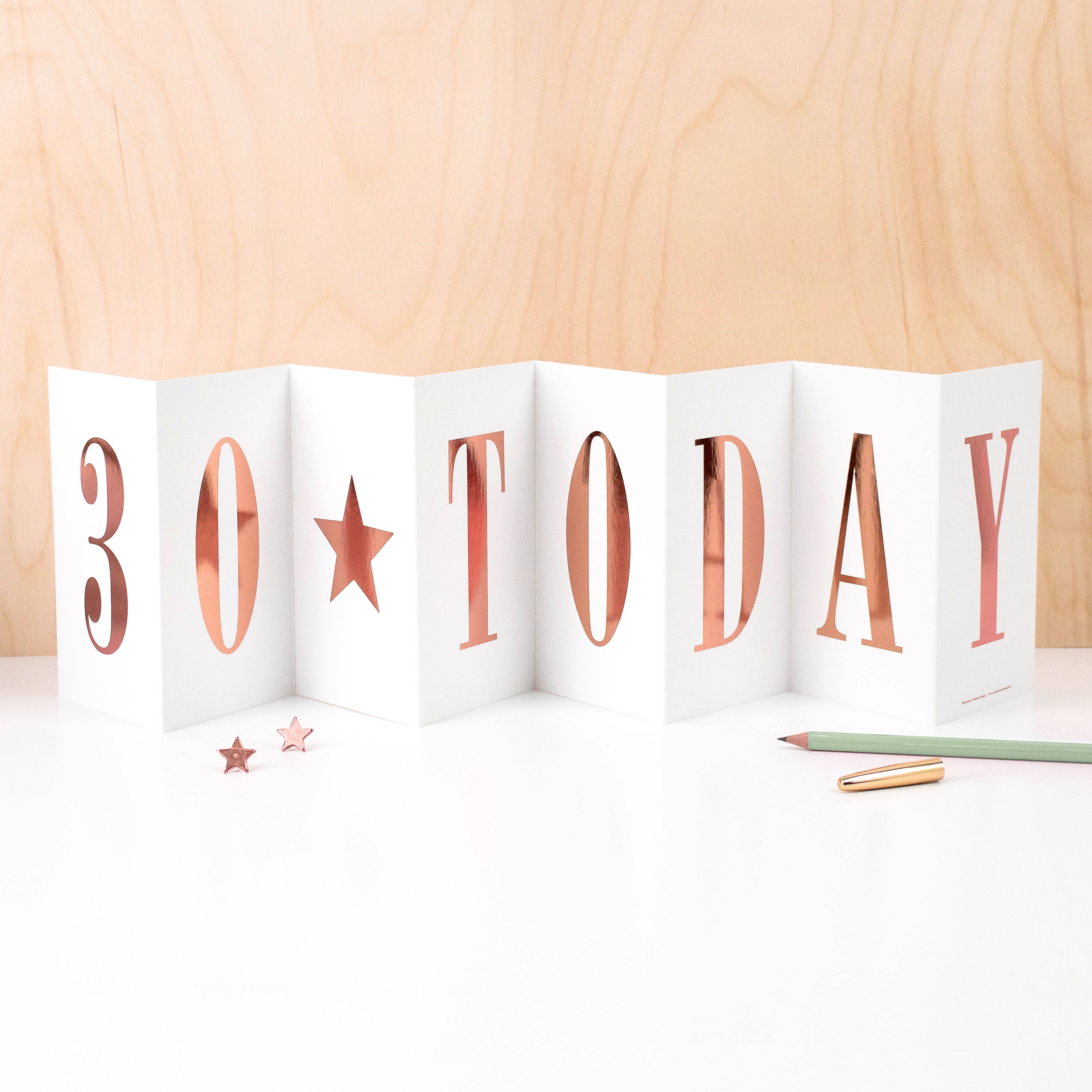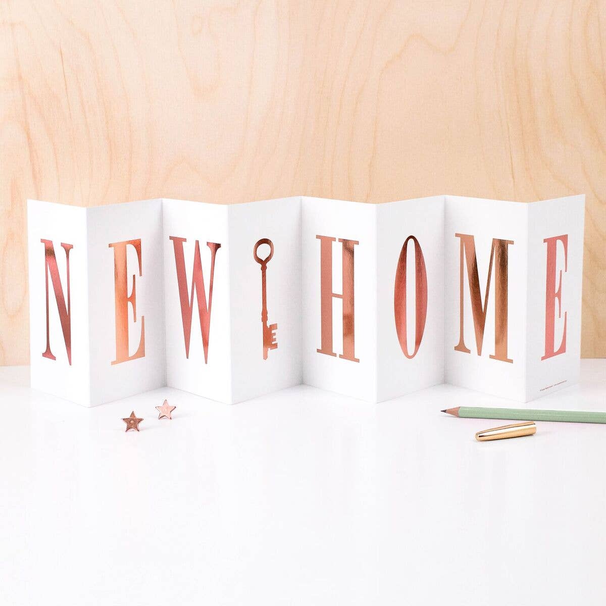 Uncoated heavyweight textured matt card. Rose Gold Foil - 6037. Size when opened: 24" x 5.8". Size when folded: 3.4" x 5.8". Comes with a kraft brown envelope.
