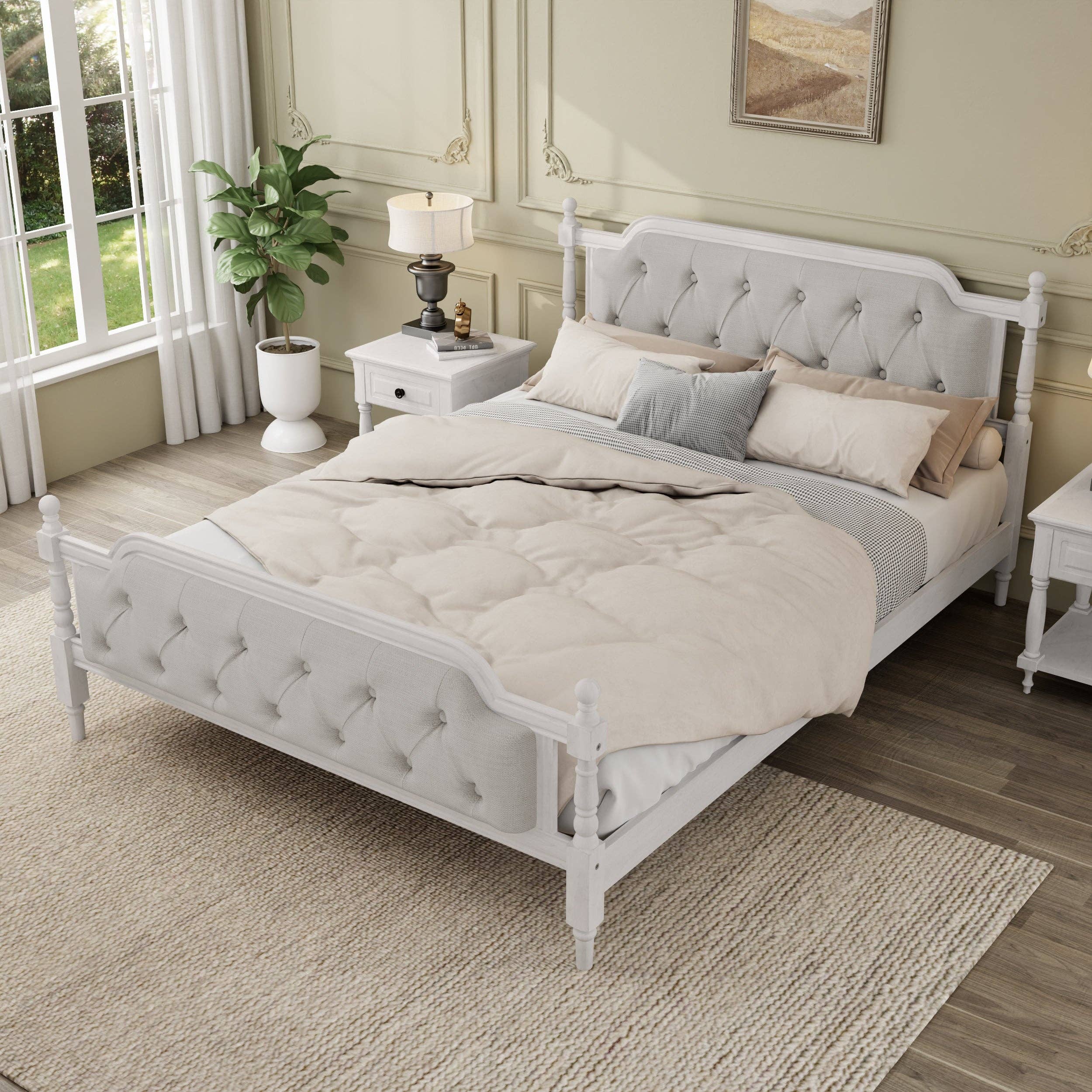 Usher quiet elegance into your master bedroom or guest room with the Aviana Performance Velvet Queen Bed. The gently undulating headboard with dense foam padding is accentuated by a precise nailhead trim, complementing mid-century modern, contemporary, or eclectic decors. Aviana brims with glam deco appeal, finely tailored in stain-resistant performance velvet. The well-constructed MDF frame provides a sturdy foundation for memory foam, innerspring, latex, and hybrid mattresses. This modern queen bed features a well-crafted poplar wood slat support system, eliminating the need for a box spring, and a reinforced center beam with two support legs for enhanced stability. Aviana stands on tapered black wood legs with non-marking foot caps. Assembly required. Weight Capacity: 800 lbs. Set Includes: One - Belinda Performance Velvet Full/Queen Headboard One - Reign Queen Platform Bed Frame. Queen Platform Bed Stain-Resistant Performance Velvet Wood Slat Support System Reinforced Center Beam.