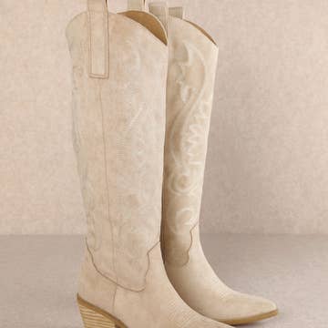 Gorgeous laser cut details reveal layered panels on this sweet western cowboy boot. Materials: Upper Material: Black & Camel & White: Vegan Leather Upper Floral: Tapestry print Upper Rose Garden: Textile Upper Insole Material: DreamCloud Cushion Sole or Heel Material: Leather Wrap Heel Details: Brand: Oasis Society •Circumference of Shoe Opening: •Size 6: 11.5" •Size 6.5: 12" •Size 7: 12" •Size 7.5: 12.75" •Size 8: 12.75" •Size 8.5: 13" •Size 9: 13" •Size 10: 13.5" •Shaft Height: •Size 6: 7" •Size 6.5: 7.25" •Size 7: 7.25" •Size 7.5: 7.5" •Size 8: 7.5" •Size 8.5: 7.75" •Size 9: 7.75" •Size 10: 8" •Ankle Circumference: •Size 6: 11.25" •Size 6.5: 11.5" •Size 7: 11.5" •Size 7.5: 11.75" •Size 8: 712" •Size 8.5: 12" •Size 9: 12" •Size 10: 12.5" •Heel Height: 3.25" •Types of Closures: Zipper •Size Run: S
