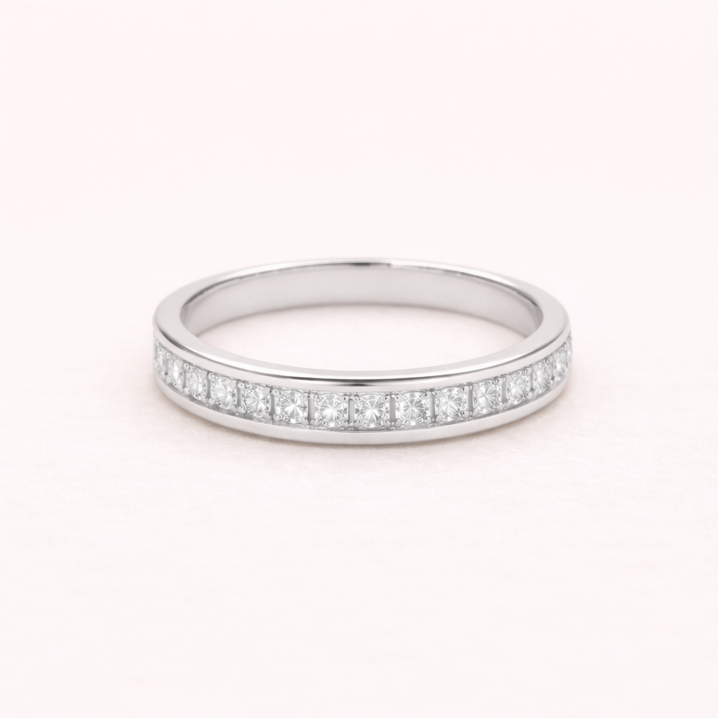 14kt Gold Moissanite “Mama” Ring in Morse Code