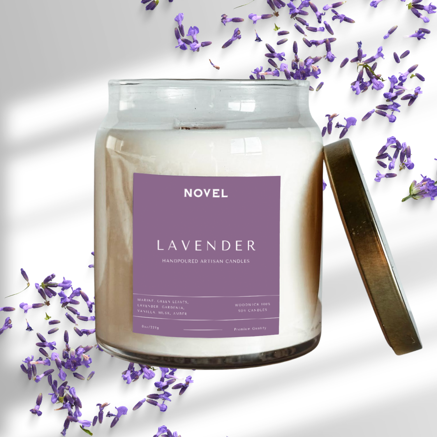 SCENT NOTES: Lavender, Bergamot, Eucalyptus Our Lavender scented soy candle will relax your mind and spirit. Infused with natural essential oils, this soothing scent is sure to create a home filled with tranquility. Handcrafted and hand poured in Rochester, New York. This candle is made out of 100% soy wax, lead-free cotton wicks, and premium phthalate-free fragrance oils, for an eco-friendly clean burn. Our candles are vegan, and cruelty-free.