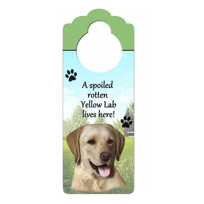 Dog signs featuring the artwork of Tomoyo Pitcher - USA made 5" x 10" Breed All About It series of signs featuring the Yellow Lab.