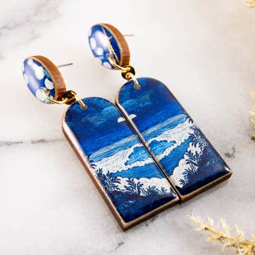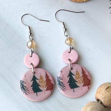 Transform your holiday season into a magical, celestial affair with these Enchanted Christmas Tree Polymer Clay Gold Moon Dangle Earrings! These festive holiday snow tree earrings are the perfect addition to your winter wardrobe and make for an enchanting gift for her stocking. The polymer clay earrings feature delicately handcrafted Christmas tree designs, evoking the enchanting spirit of the holiday season. Each tree is a symbol of winter's beauty and the joy of Christmas. With the added touch of shimmering gold moon dangles, these earrings bring a celestial elegance to your holiday ensemble. They capture the magic of a winter night's sky and add a touch of sophistication to your look. Handmade item Materials: polymer clay, rose gold stainless steel Style: Boho & hippie Drop length: 2.5 Inches; Length: 1.75 Inches; Width: .75 Inches