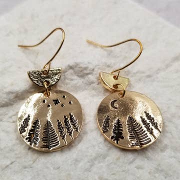 Enchanted Christmas Tree Winter Clay Gold Moon Earrings