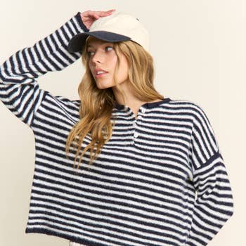 SKU: BMC8097, BMC8097, BMC8097 Made in China Aesthetic: Casual Fabric: SELF: 100% POLYESTER Fit: Contemporary Occasion Theme: Everyday Occasion: Everyday Pattern: Striped Season: Fall/Winter Sleeve Length: Long Sleeve Product Language: English Weight: 453.59 g (1 lb)