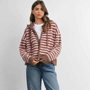 Striped Zip-Up Hooded Cardigan - BMC8097