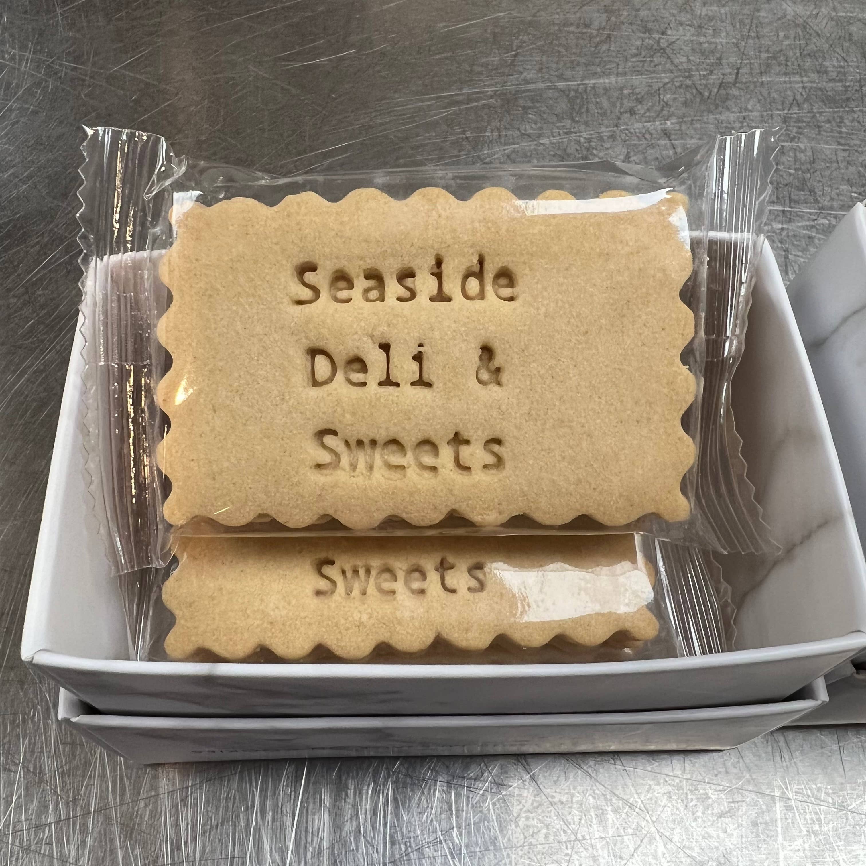 Add a special stamped message, wish, date, or name to your shortbread cookies. Our cookie gift box is filled with custom stamped cookies, made from a decadent French recipe, and crafted with love. These delights are the perfect balance of rich flavor and delicate texture. This mini cookie box makes a charming addition to any gift basket or a delightful small gift on its own. Every gift box comes with four stamped cookies wrapped in pairs in a beautiful white marble patterned box. Cookies stay fresh for up to 3 months at room temperature. Once you place an order, a member of the Delight Patisserie team will reach out to you for your custom message. 1 message per box All messages will be centered and in capital letters