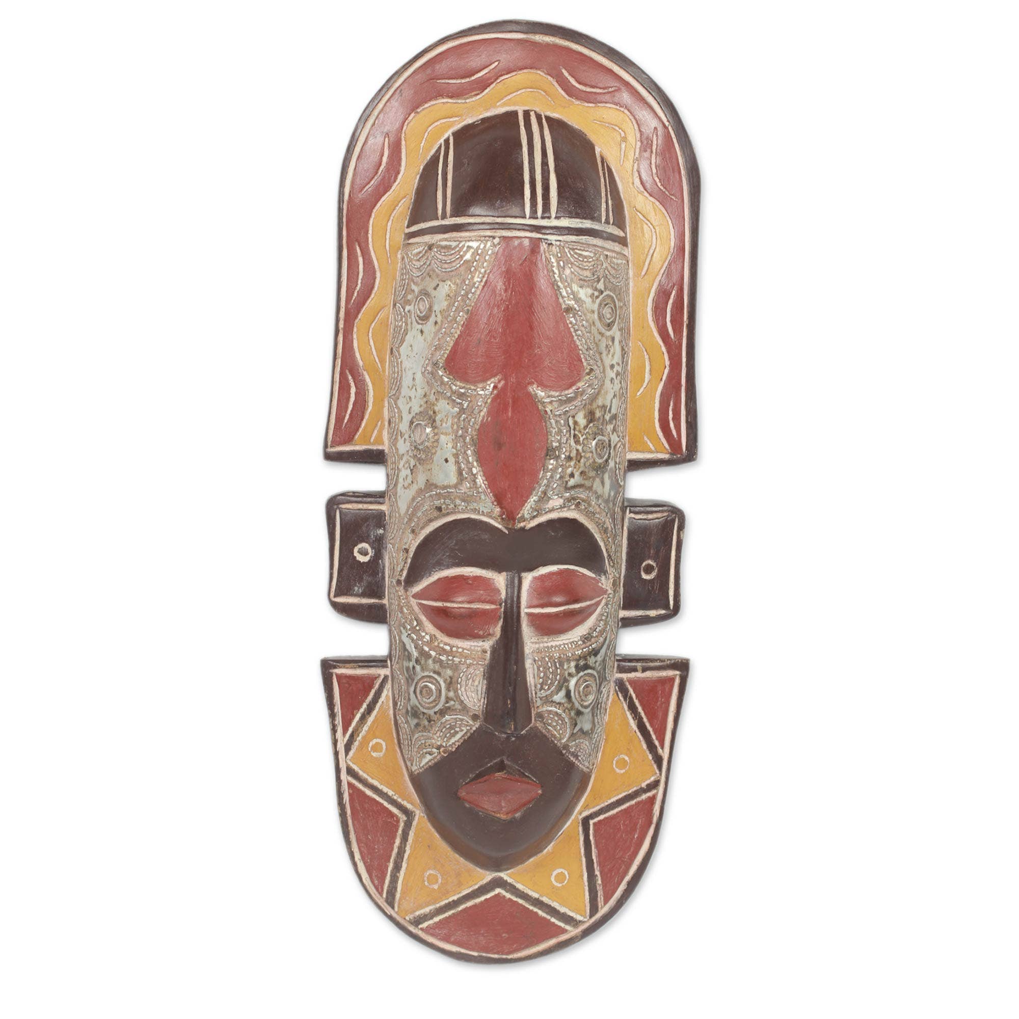 This set of 5 awesome Polynesian-style wall masks is hand-carved from wood, then hand-painted with a colorful finish to give them an island vibe. Each mask measures approximately 12 inches tall, 4.75 inches wide, and 3 5 inches deep. They look great on walls in patios, living rooms, offices, bedrooms, and even in kitchens. These wall masks make a great gift for both friends and family. NOTE: Since these masks are handcrafted, yours may differ slightly from the ones pictured.