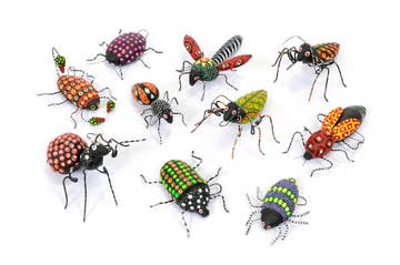 Concepción and her daughters create these whimsical, sturdy, hangable and inspired ceramic bugs. Each one is unique and completely handmade with wire framework and articulated, hand painted ceramic bodies, 3-5" in length. Sold in an assortment of six. *NOTE: Our sustainable, small batch production cycles allow us to offer generous shipping windows. Please specify your desired ship date when placing your order or message us. We will do our best to accommodate you. Thank you!