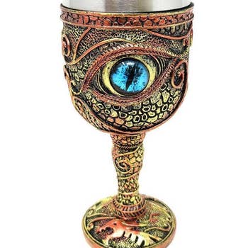 Cthulhu Wine Goblet Product Size: 3.25"x 3.25" x 6.5" Material: Cold Cast Resin / Stainless Steel Insert Case Pack; 24