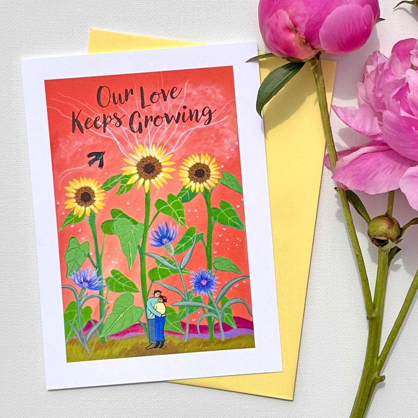 This listing is for a fun 5"x7" greeting card- printed on beautiful linen-textured paper and featuring my watercolor art of a stargazer lily flower and the pun phrase "I lily love you!" It comes packages with a kraft paper envelope and is blank inside.