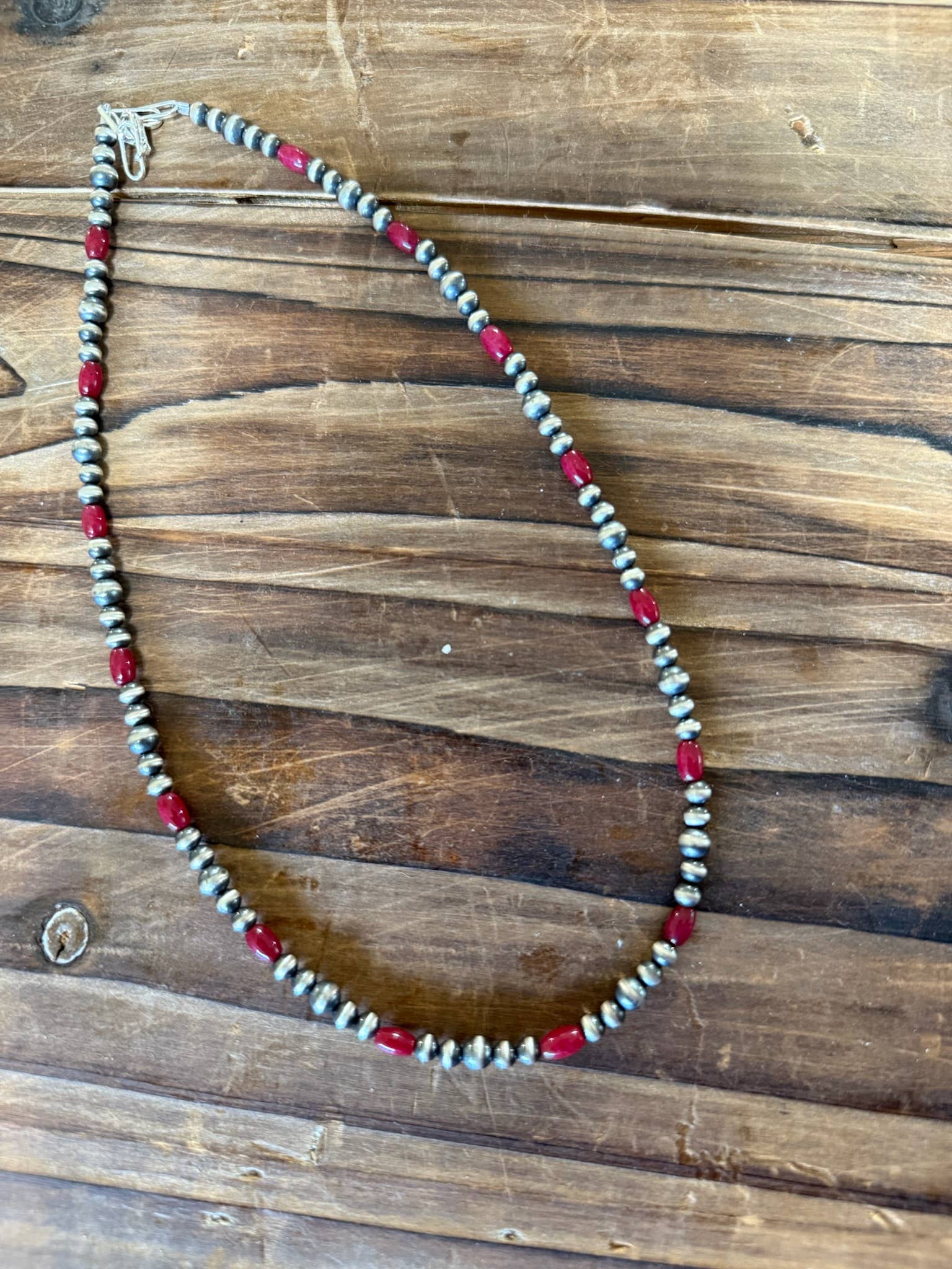 Handcrafted Authentic 5 mm Navajo Pearl Bar Necklace. This minimal necklace is truly beautiful. Each piece is hand-crafted. The spiny oyster shell varies from red to orange. The necklace comes made at 14" with a 2” extender to play with the length. Matches beautifully with the earrings made with the same materials. (Separate listing)