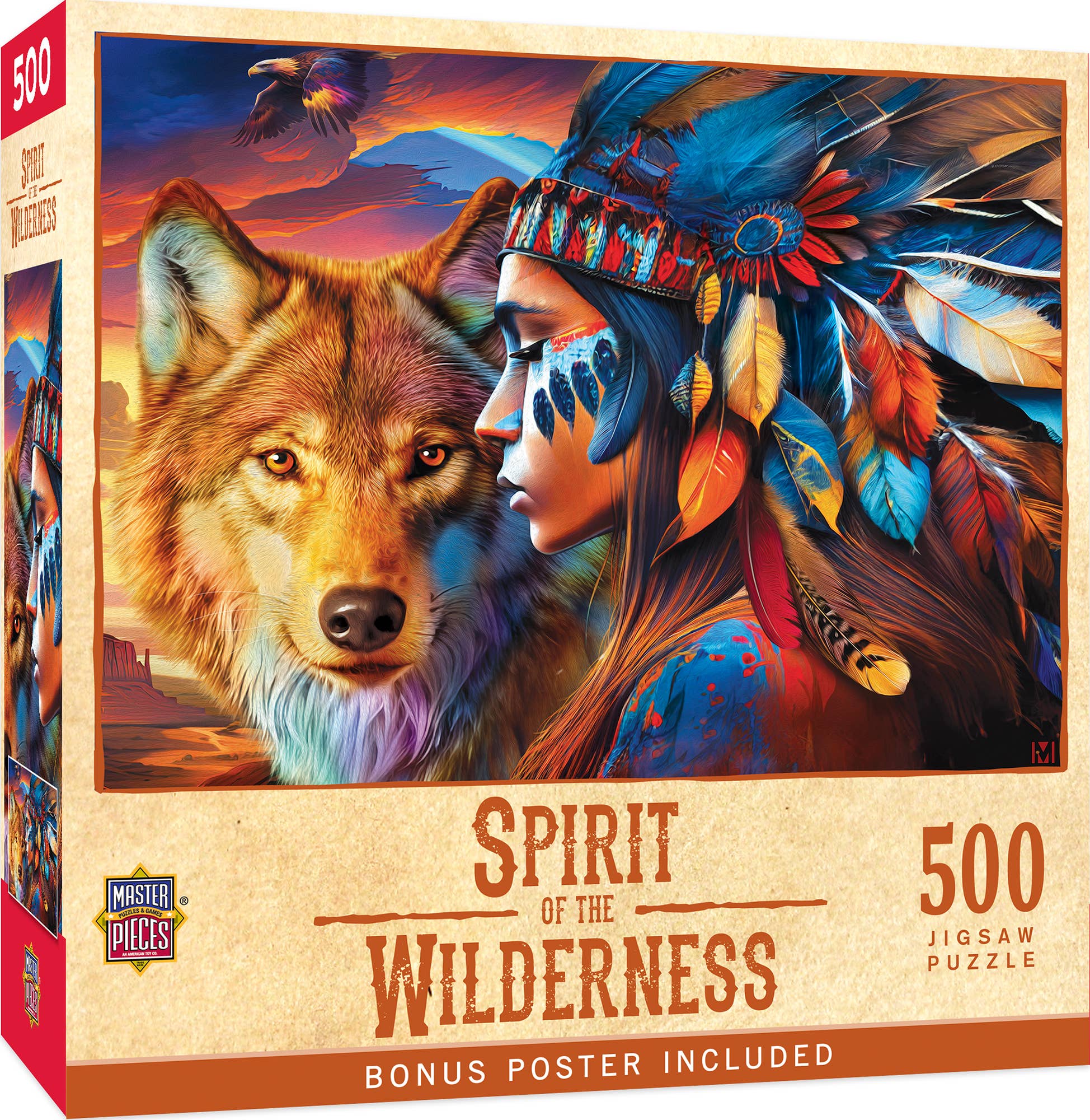 A crow sits majestically upon the wings of a Native American totem pole in the mist. With intricate details on the totem and the mystical background, this is sure to be a pleasing puzzle and a wonderful art piece once completed. Artist: Terry Isaac MADE IN THE US: Cobble Hill Puzzles are proudly manufactured in the USA. RANDOM-CUT PIECES: This piece design means each puzzle piece looks different - A fun challenge. HIGH-QUALITY MATERIAL: The glare-reducing linen paper and crisp image make it a perfect piece to frame. EARTH FRIENDLY: All cardboard is made from 100% recycled material. Our ink is also vegetable based. NO INSTRUCTIONS REQUIRED: Simply use the box cover or convenient linen print poster included. Finished size is 26.625" x 39.25” Poster Size: 17.5" x 11.8" Ages 12+