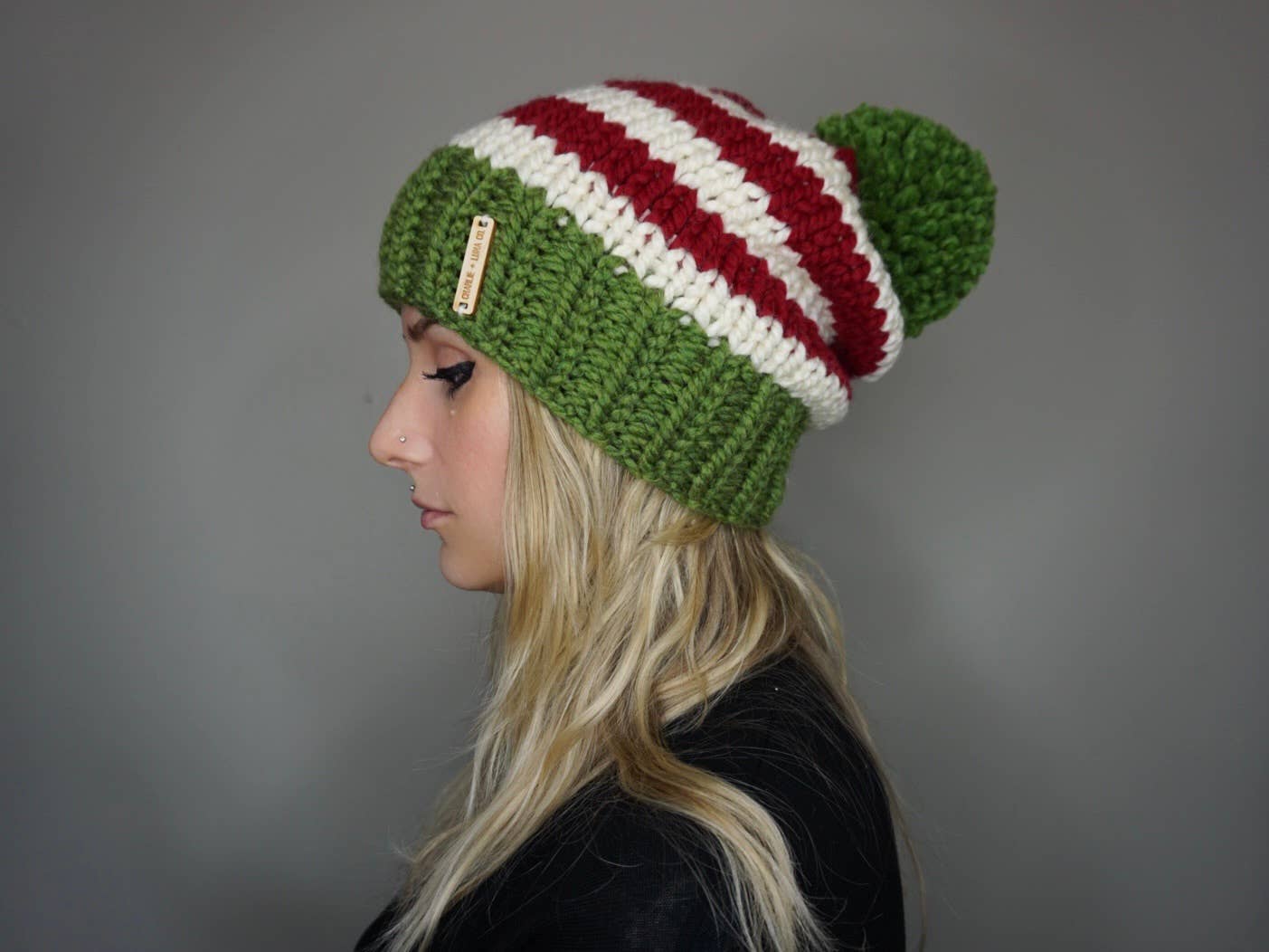 MADE TO ORDER SLOUCH LEVEL: 4/4 - Super slouchy •santa themed knit beanie •made with high quality, soft, chunky wool/acrylic blend yarn •knit by hand with care and attention to detail •slouchy & very stretchy •topped with jumbo yarn pom or faux fur pom •unisex - great for men, women and teens •fits approximately 20-24 inches - one size fits most