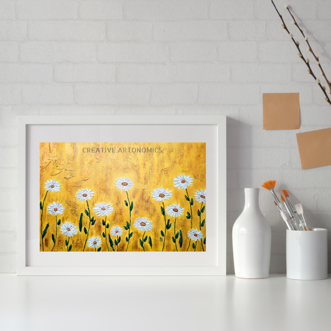8x10 art print on 215 gsm acid and lignin-free matte paper. Made with dye inks for durability and longevity. Print features a minimalist depiction of Black Eyed Susans. Designed by Liz Derby.