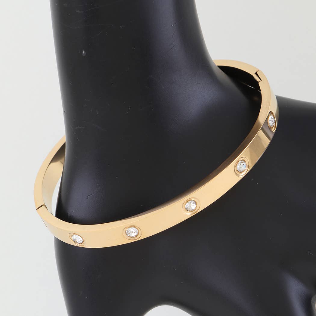Wholesale Stainless Steel Stone Bezel Hinged Bangle Bracelet