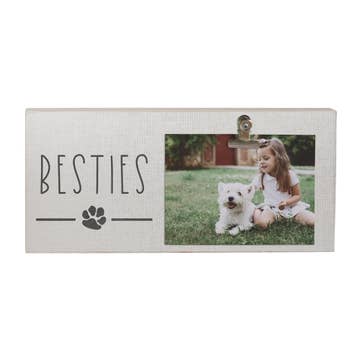 The metal heart is perfect for tucking in a photo of your fur baby! This reversible block features a cute paw print on one side, and "Fur Mama" on the other. Great table top or tray decor.