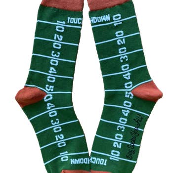 No contract, no helmet, no problem. You’re still the GOAT of your league. These brown novelty socks bring the swagger with light brown toes and heels, gray cuff stripes, and a football logo stamped with the title every couch champion craves: “Fantasy Football Pro.” Add the football illustration and you’ve got the perfect uniform for draft night glory. The blend (70% cotton, 28% polyester, 2% elastic) keeps them machine washable, soft, and breathable through Sunday couch marathons, endless trash talk in the group chat, and that weekly ritual of explaining waiver wire strategy to people who just don’t get it. One size fits most (Men’s 6–11, Women’s 7.5–12), which makes them a solid gift for your league buddies or a shameless flex for yourself. The NFL may not know your name, but in your fantasy league? You’re already a legend.