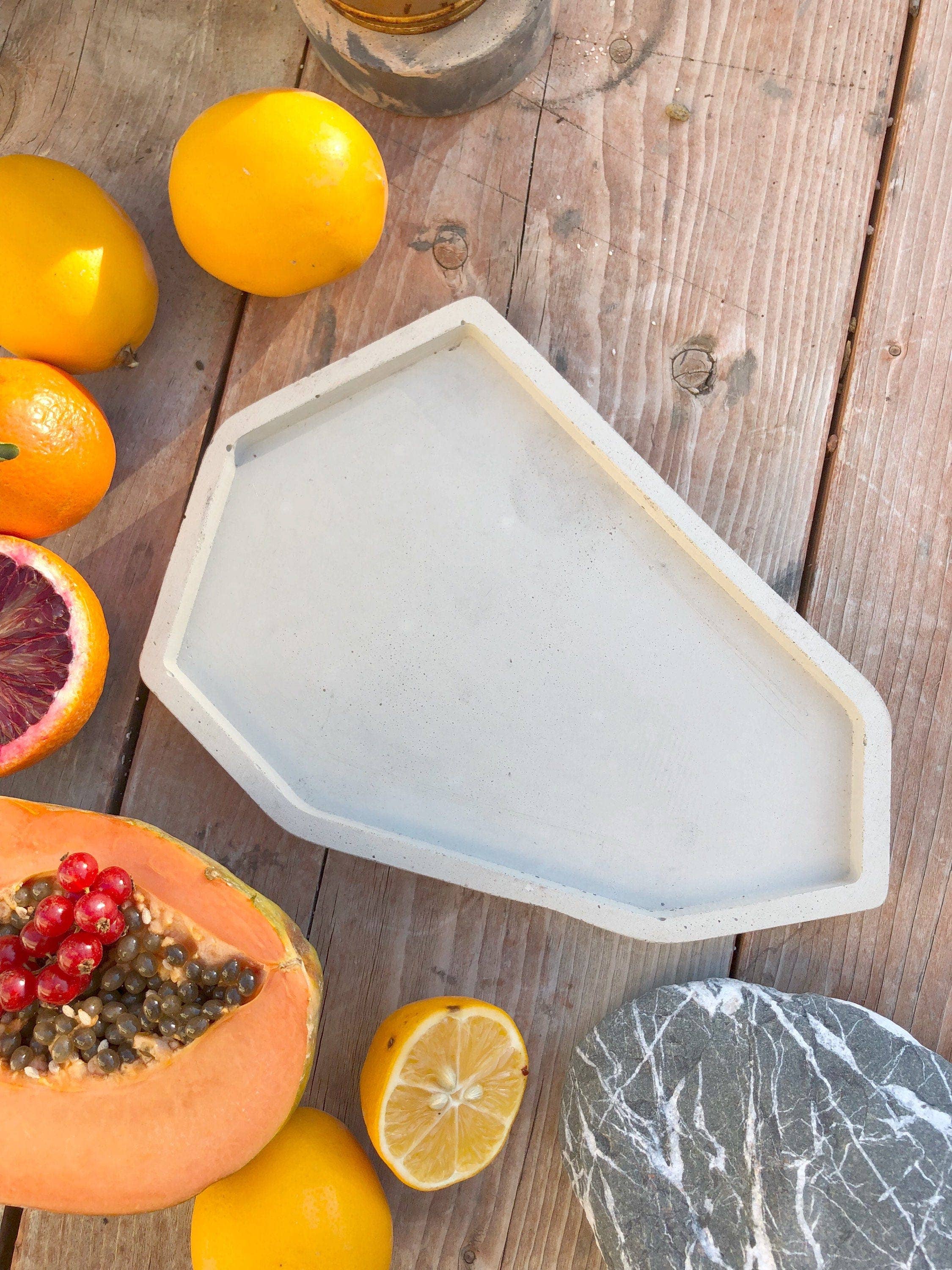 A trio of unpigmented natural concrete stands perfect for staging items. Each stand was poured and finished by hand. No two will be the same.