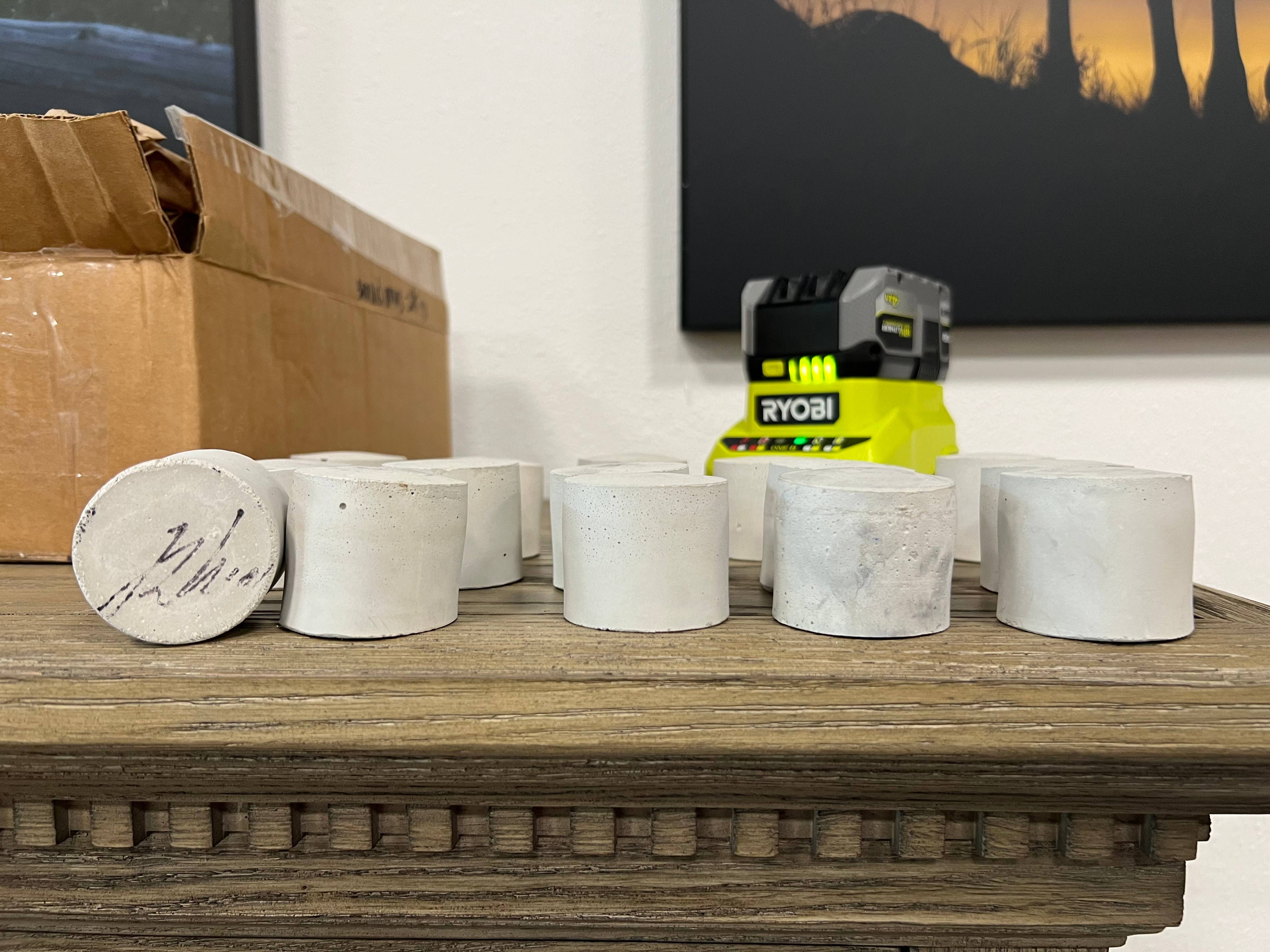 Trio of Concrete Display Risers Pillars Natural Unpigmented