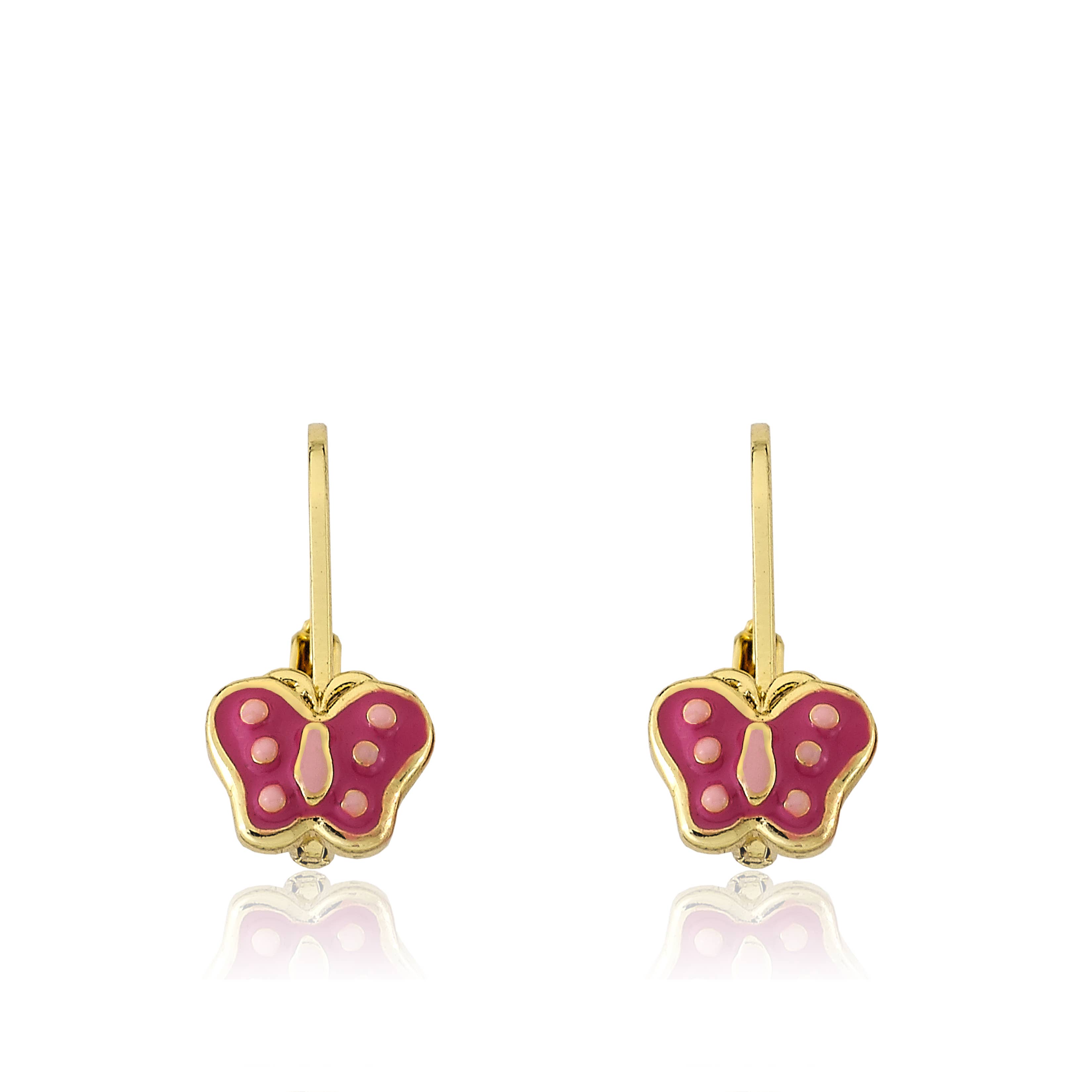 Sterling silver dainty pink butterfly earrings. These sweet little earrings are rhodium plated for everlasting quality with screw backs so she won't lose them and come packaged in darling gift box! Earrings include an extra hypo-allergenic, anti-tarnish finish to keep your pieces sparkling beautifully for years to come. Coordinating necklace available as well.