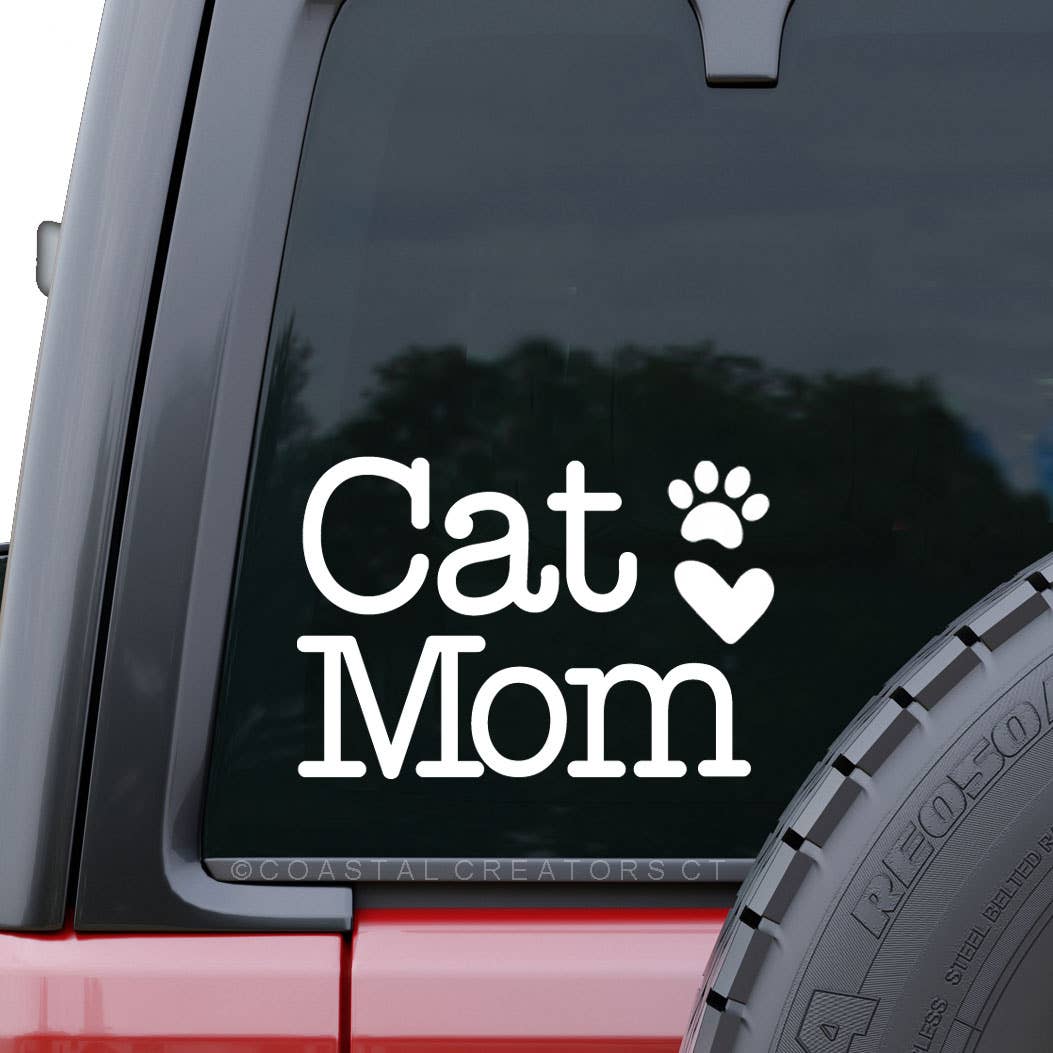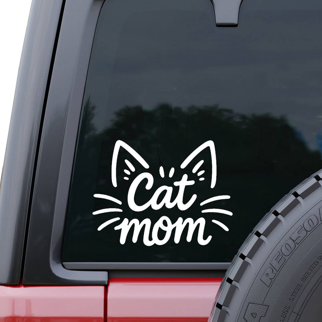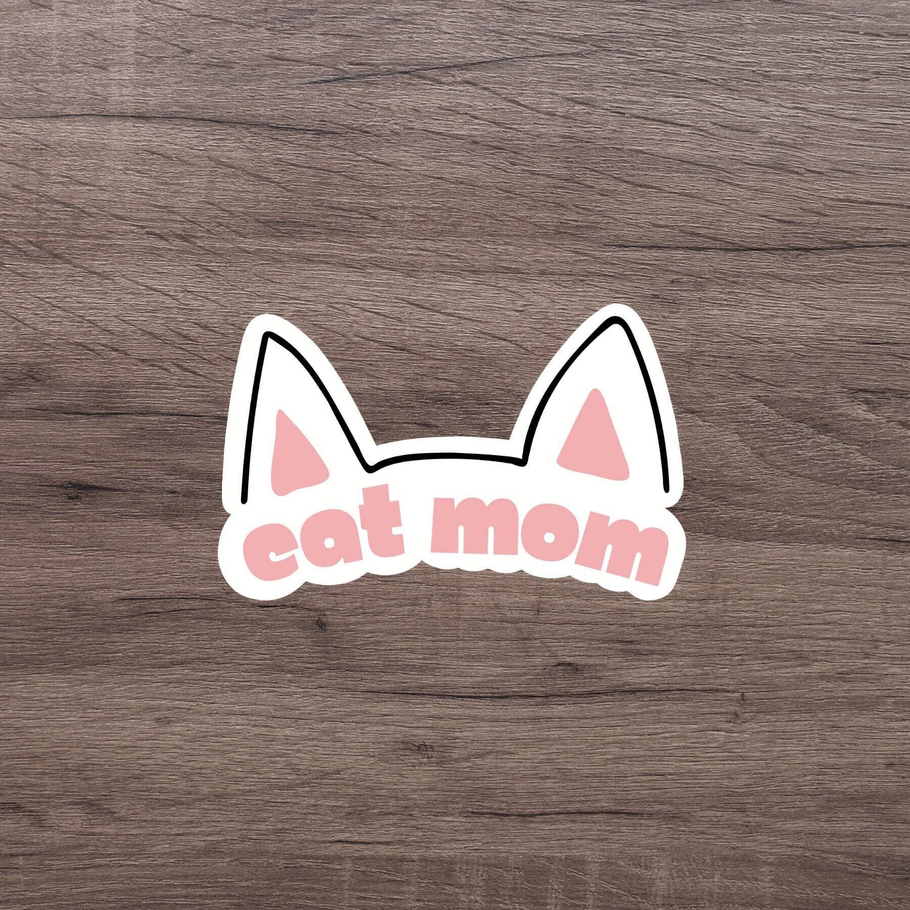 Cat Mom Sticker. Great to decorate water bottles, laptops, phone cases, coolers, car windows, journals, notebooks, planners, bikes, skateboards, kayaks, and more. This sticker is a great gift for any cat mom out there! Details: •2.73 x 3 inches • Made in the U.S.A. • High quality and durable vinyl, indoor and outdoor use • Waterproof and weatherproof