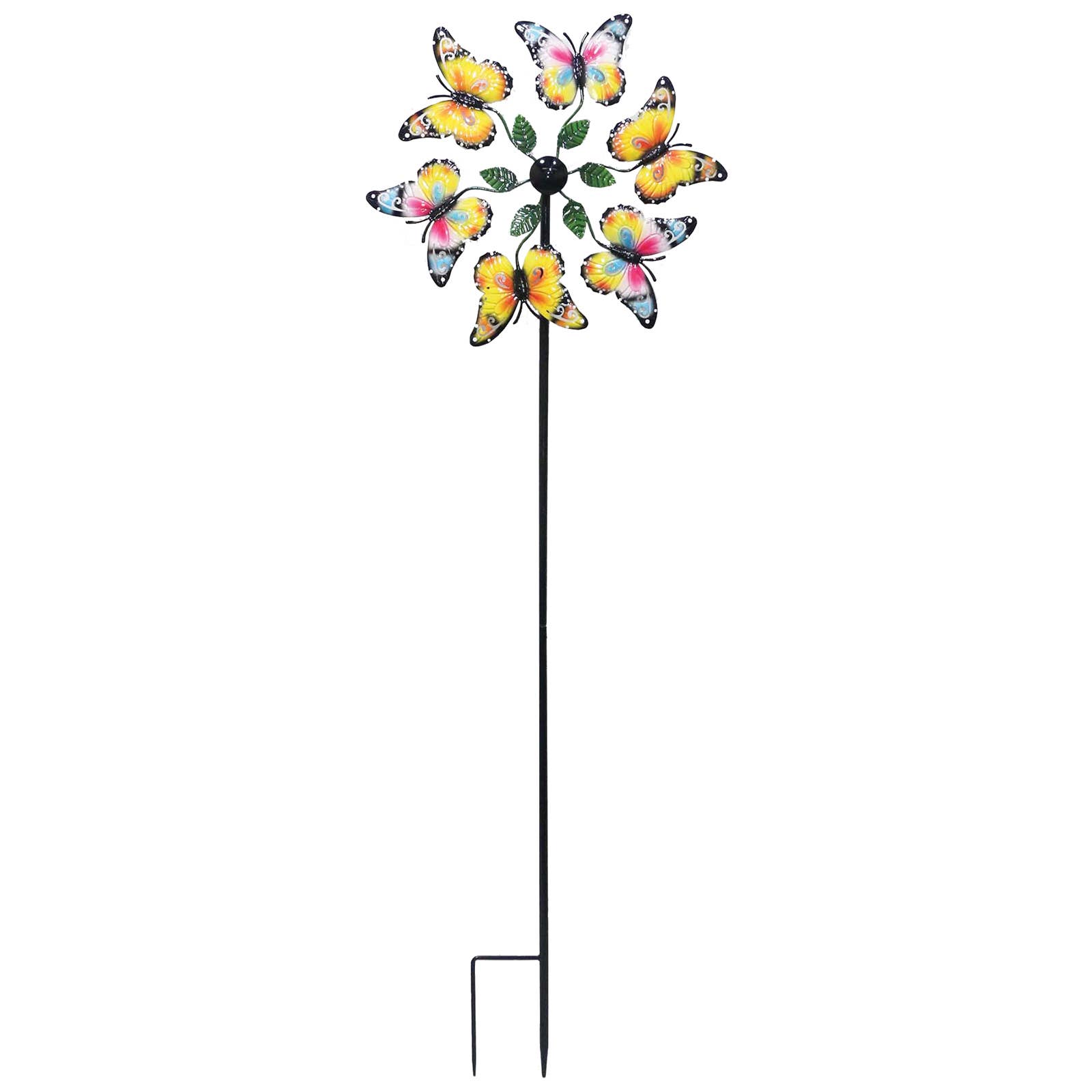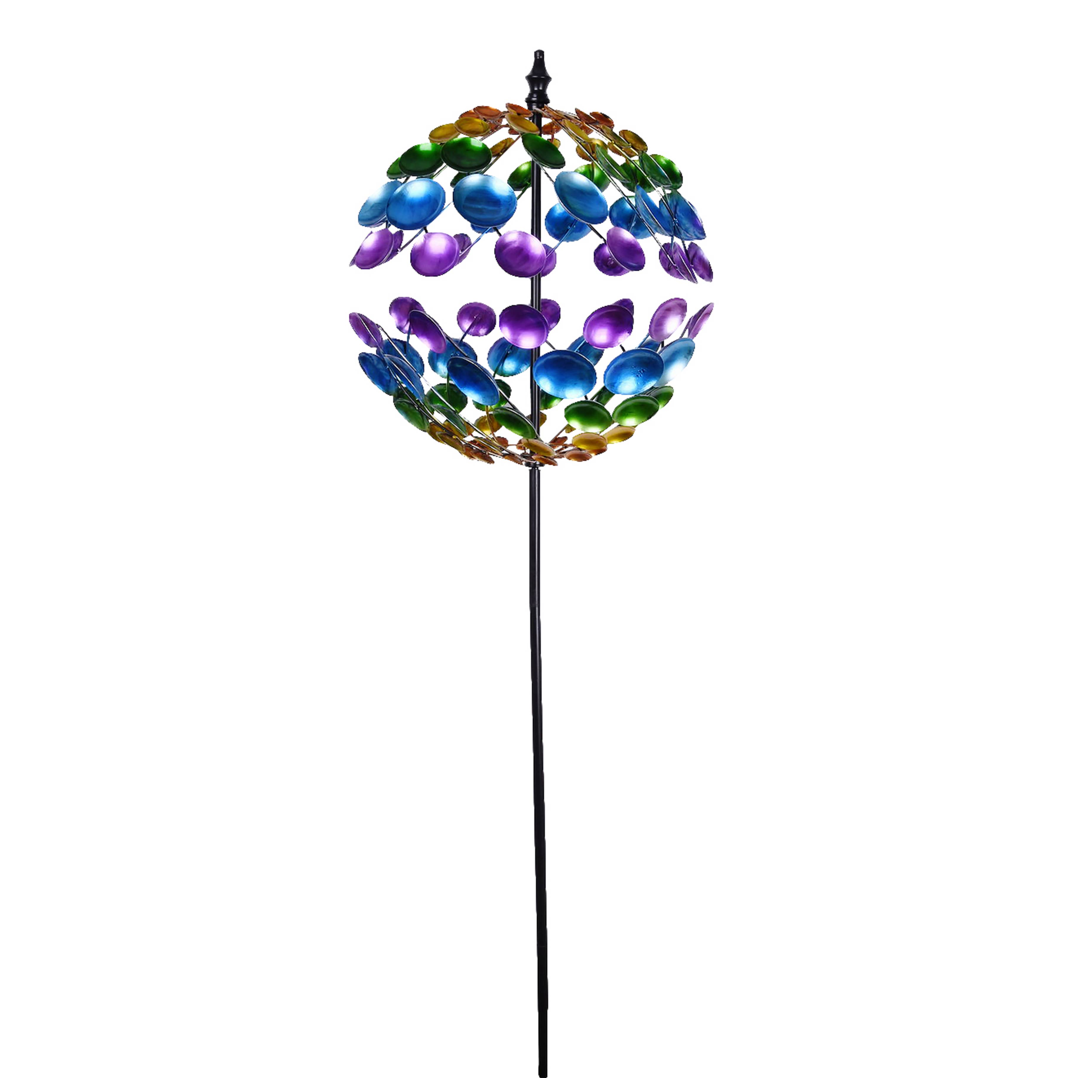 Add beauty and movement to your garden with the Nature in Motion, Balancing Floral Wind Spinners. These beautiful hand-crafted floral wind spinners provide a unique way to add color & motion to your landscape. Multi sizes and colors available. How they work? The underside of the flower has a center point cup that rests on a mini ball atop the sturdy yard stake. Each floral design has been mathematically balanced balances using natures gravity. A gentle breeze will get the flowers spinning. Place several in a pattern at different heights makes a unique and interesting display. They can be used in a large deep planter and lean them out at an angle. Please note* From time to time a high gust of wind will displace the center point or dismount the flower entirely. Please be sure to remove in advance of high winds or storms.
