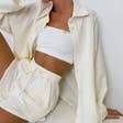 Features: * Ladies Daily Set * Top and Shorts * 100% Cotton with Gauzy Feel * Fabric No Stretch * Solid Color * Long Sleeves Top * Shorts with Side Pockets * Please Note Light Color Will a Little SEE SHEER. Thanks Details: One Item include: 1 * Ladies set include top and shorts Model Fitting: * Model wearing size S * Model Size: Height - 68.9" Bust - 35" Hips - 35.4" Waist- 24.4" Note: * We have different sales discount in 3%/5%/10% for our retailers, please feel free to shop * Color may vary due to lighting on images. * Please refer to the size chart * Any problem please contact with our customer service first, we will try our best to help solve the issue. Private Label Sew Acceptable * Contact Us by Message * Prepare the Label Art Work File in PDF or AI Format with Correct Size in Advance