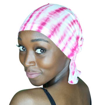 Original Chemo Beanies® created by survivors for survivors as a simple solution to the expanded burden women face during a serious health crisis. Midnight Tie-Dye Ruffle Signature Slip-On beanie adds feminine volume, producing the subtle look and feel of having hair. The unique elastic design stretches for a comfortable and easy fit. Slips on and off with ease; No tying necessary. Our patented design features a fluent fabric flap for a polished look that provides full coverage around the nape of the neck. Chemo Beanies® ends the search for the perfect fashionable fit and allows women to spend precious time focusing on their healthcare, not their headwear. machine wash cold/lay flat to dry 90% Polychiffon 10% Spandex, elastic band, nylon thread Our Beanies are named after warriors we've met on our journey. Courage is Always in Fashion®