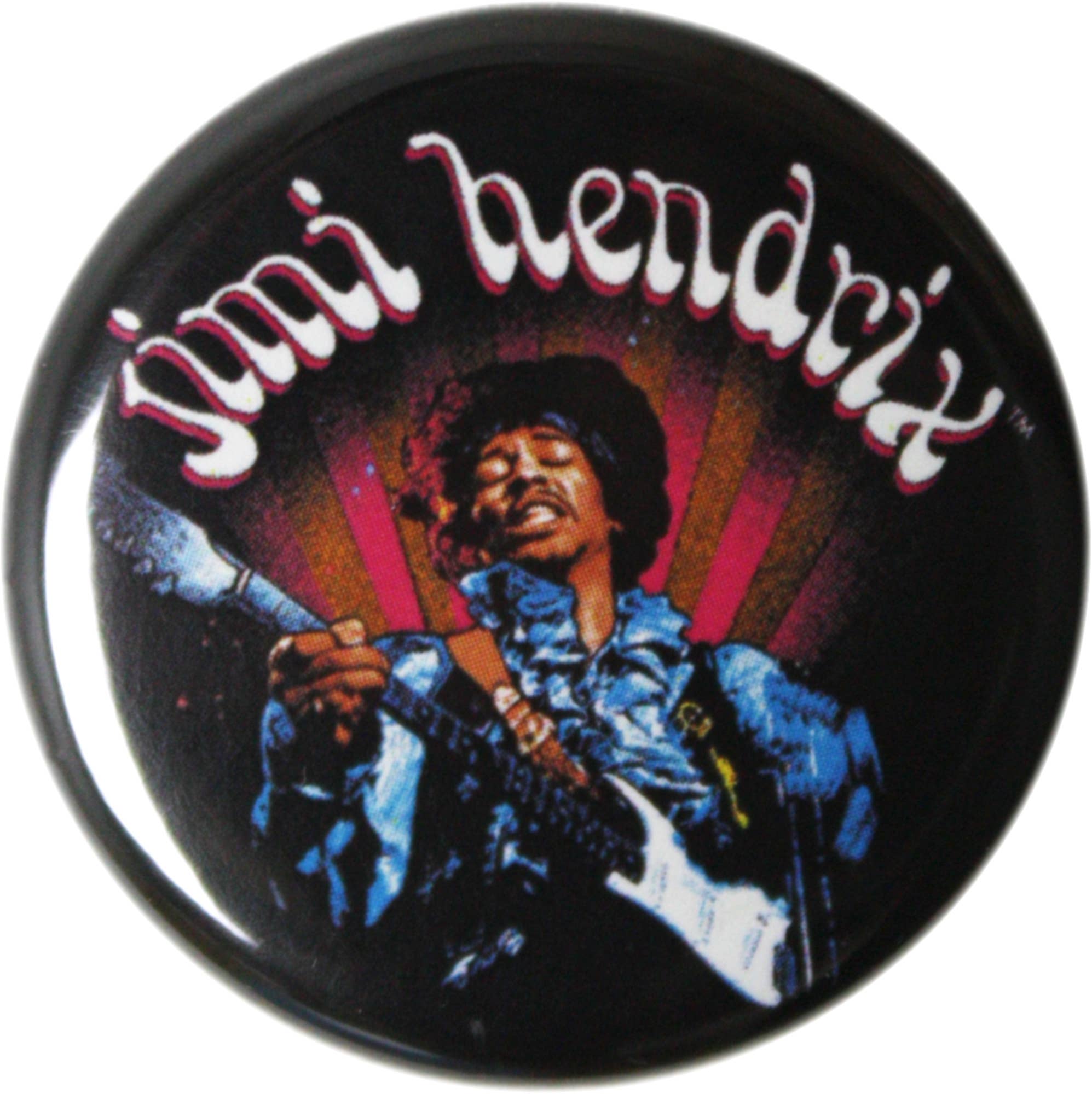 Celebrate a rock legend with Ephemera's Button-Jimi Hendrix lapel pin. Bursting with multicolored vibrance, this 1.25" Pin Back Button is a nod to the iconic musician's flamboyant style and electrifying stage presence. Whether it's to adorn your backpack or lanyard, or as a conversation piece on your fridge, this pin adds a dash of rebellious charm. So, express your love for Hendrix and his music with this vividly designed lapel pin. Remember, with Ephemera, humor and style go hand in hand.