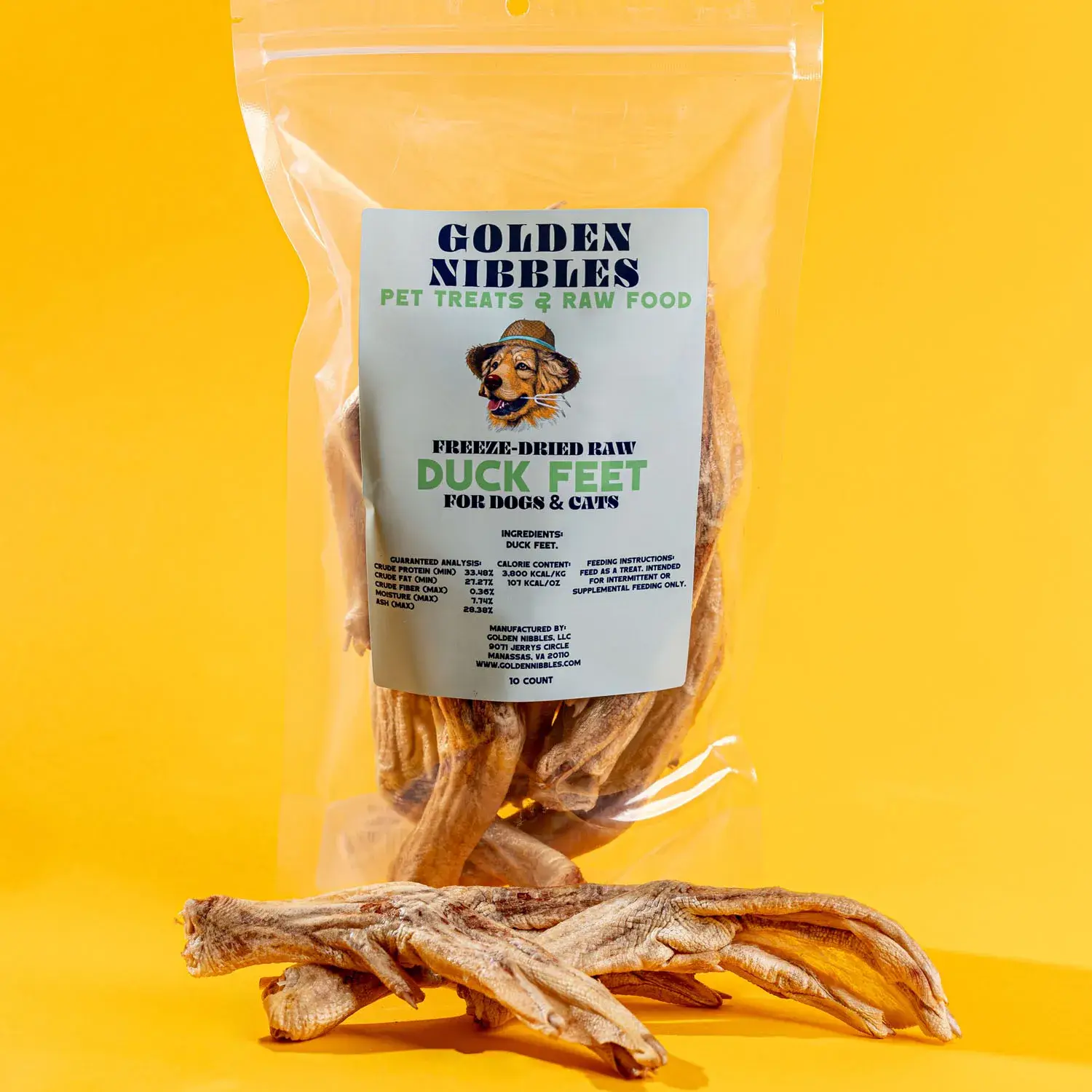 For Dogs & Cats Freeze-Dried Raw Rabbit Foot (Back Feet) 🐇 Available in Two Formats: •Bagged (6-pack) – sealed in a Golden Nibbles logo bag (this listing) • Unwrapped – perfect for chew bars and pick-your-own bins - see other listing Key Features: • Back feet – larger and meatier than front paws • Great for medium to large dogs • Clean appearance – not dirty or overly bloody like many dehydrated options • Sourced from trusted local farms in VA, SC, and NC • Single-ingredient chew ➡️ Looking for something smaller? We also offer freeze-dried front feet (paws) — a great size for cats and small dogs. See our Rabbit Front Paw listing for details! Storage: • Shelf-stable for at least 1 year • No refrigeration needed • Store in a cool, dry place, away from moisture and sunlight