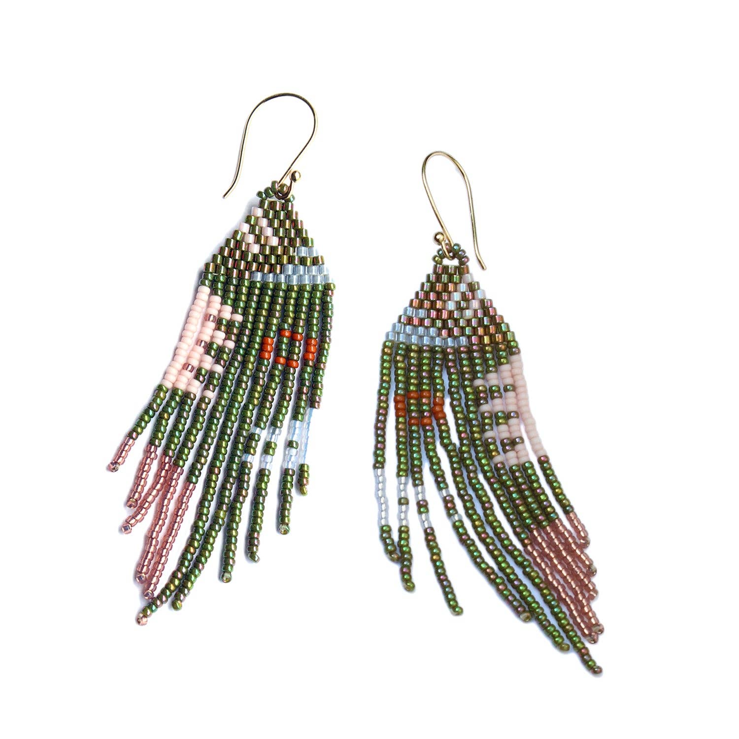 Franja is a bluma fave! Color shifts from top to bottom in a cool ombre effect with beads. Fun fringe style is set on a hug post hoop. Glass beads, gold-plate, 3'' drop. Made by artisans in Guatemala