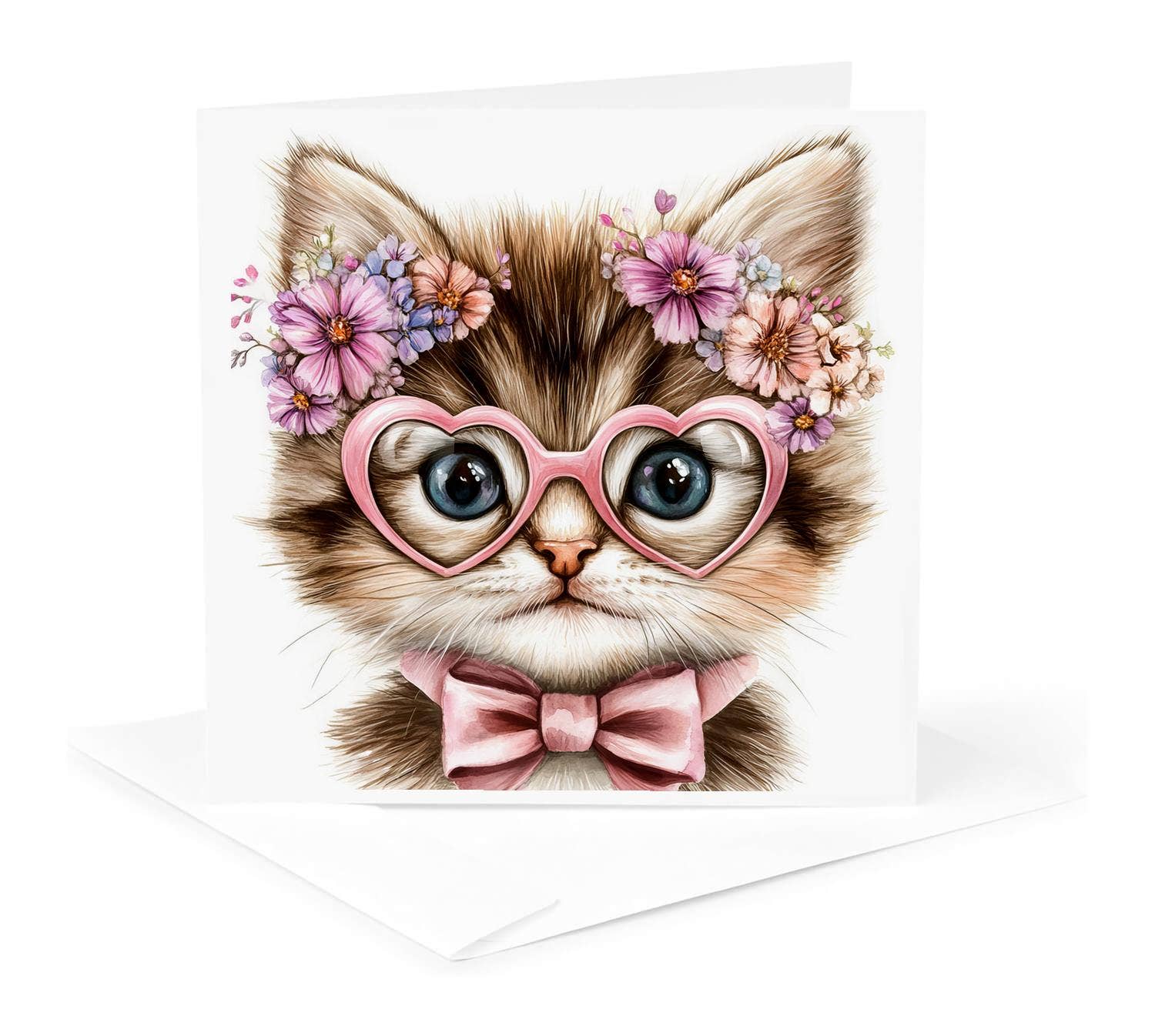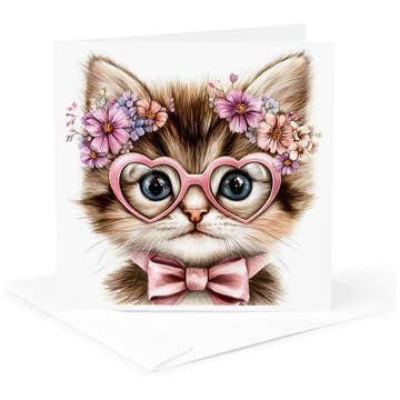 Hand drawn kitten with painted details determined to give someone a hug. Details: Size - 4.25”x 5.5”. Printed on natural off white paper and paired with an off white envelope. Blank interior for personal message.