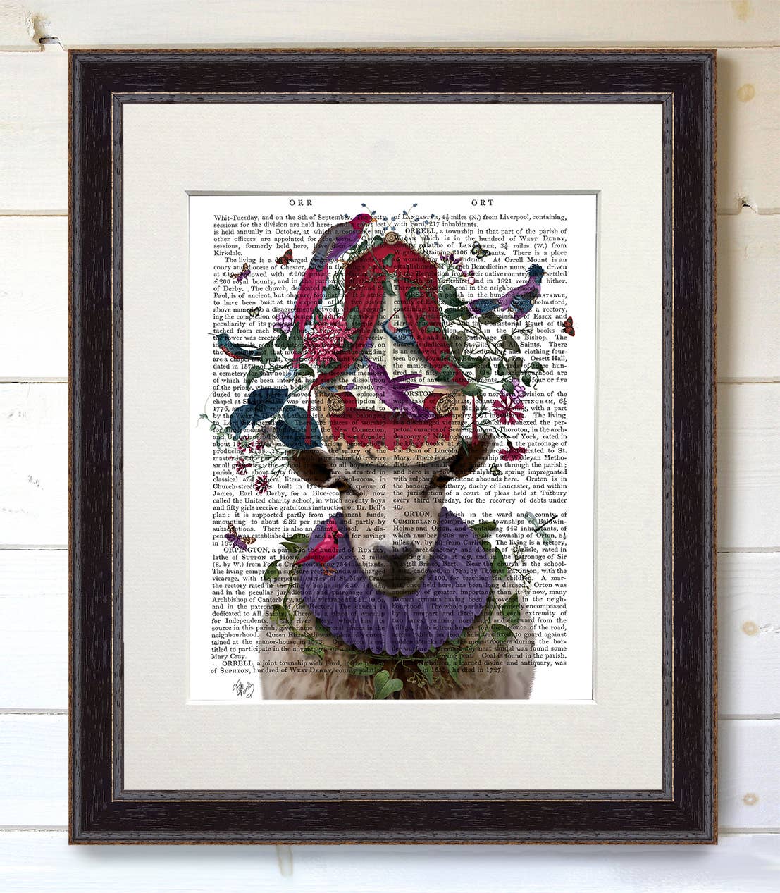 Imaginative illustrations from Kelly Stevens-McLaughlan printed onto the pages of antique books from the 1800s. Charming and unusual artworks that have vintage character and timeless style. Options: 1 - Real antique book page, in a 11x14in white mat. 2 - Real antique book page, in a 11x14in white mat, and FRAMED in black, white or caramel wood. Beautiful and ready to hang.