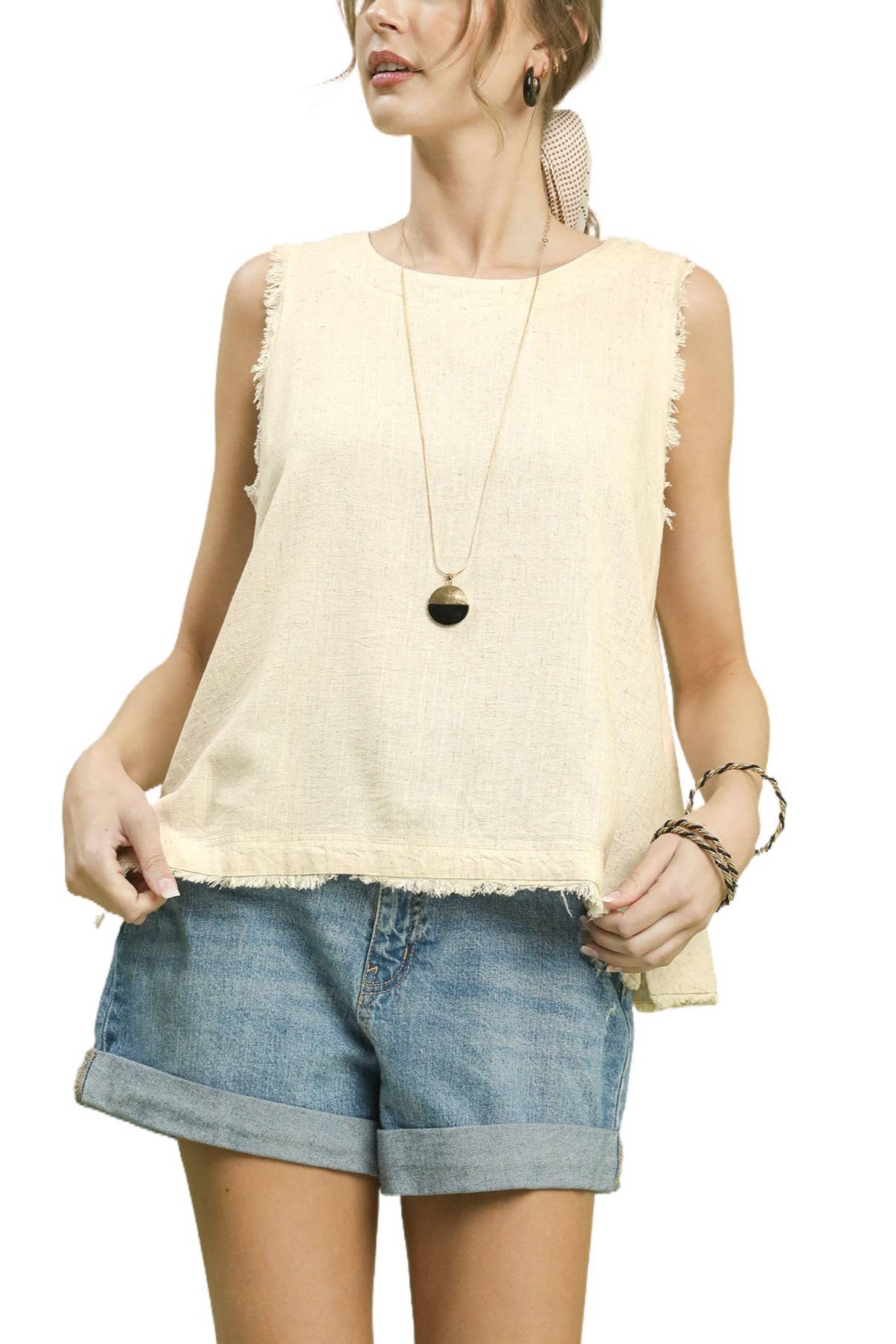 Our "Basic Meets Feminine" knit top brings out the feminine joyful side with its lace trim detailing on a babydoll basic body. Known for its softness of the garment with our POL "SPECIALITY" wash. (When we say it's soft, WE REALLY MEAN IT!) Designed in a relaxed babydoll fit with low V neckline, sleeveless, layers of see through lace trim detailing on the bust and back yoke, baby ruffle detailing on the bust with raw edge and finished with flowy bottom with clean hem. Specs/Dimensions: - LENGTH: 28" - BUST: 19"