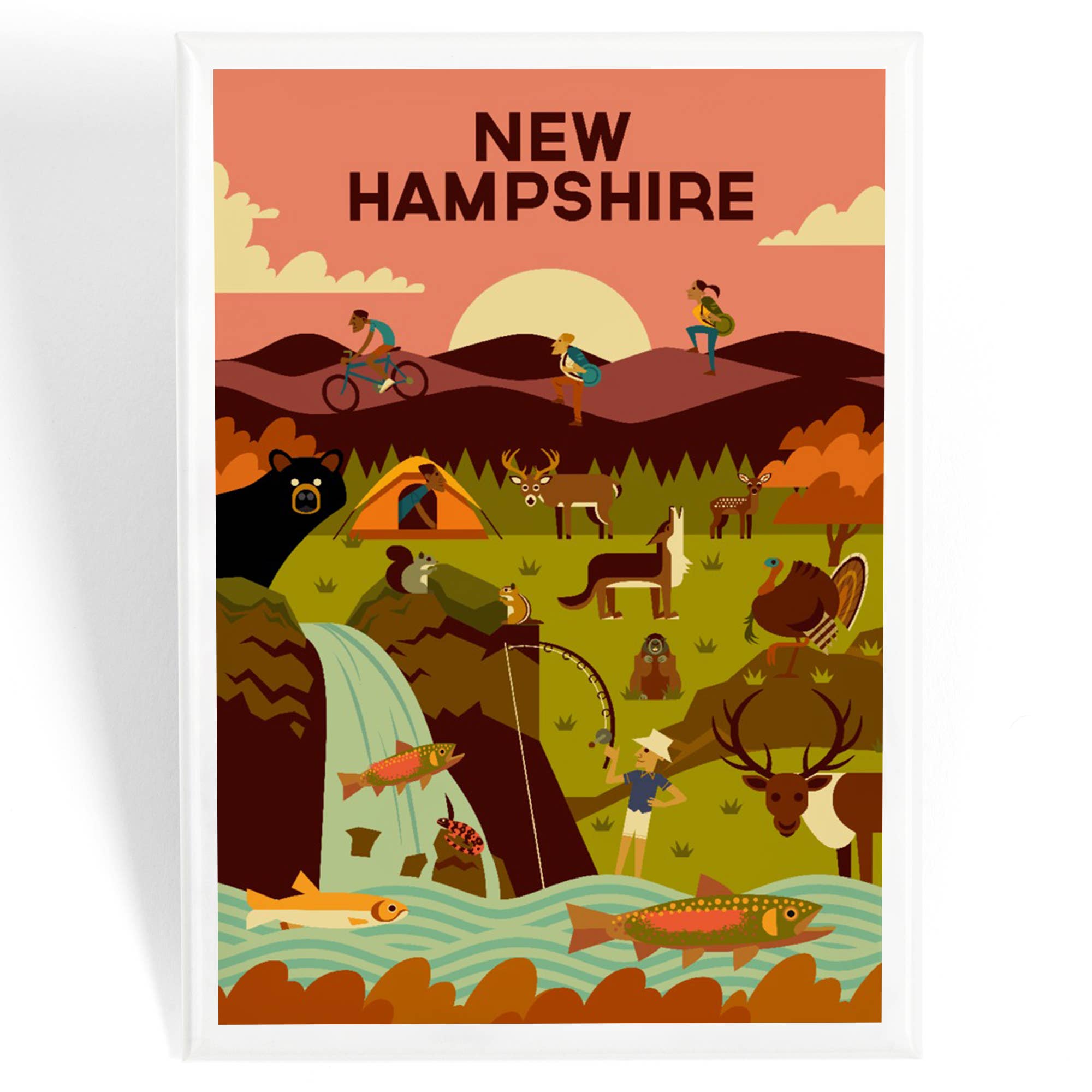 This rigid high quality button style magnet measures 2.5 x 3.5 inches. This item is the fridge magnet version. The magnets are bulk packed. This design is also available as a print, greeting card, postcard and as a large format canvas. All items made in the USA.
