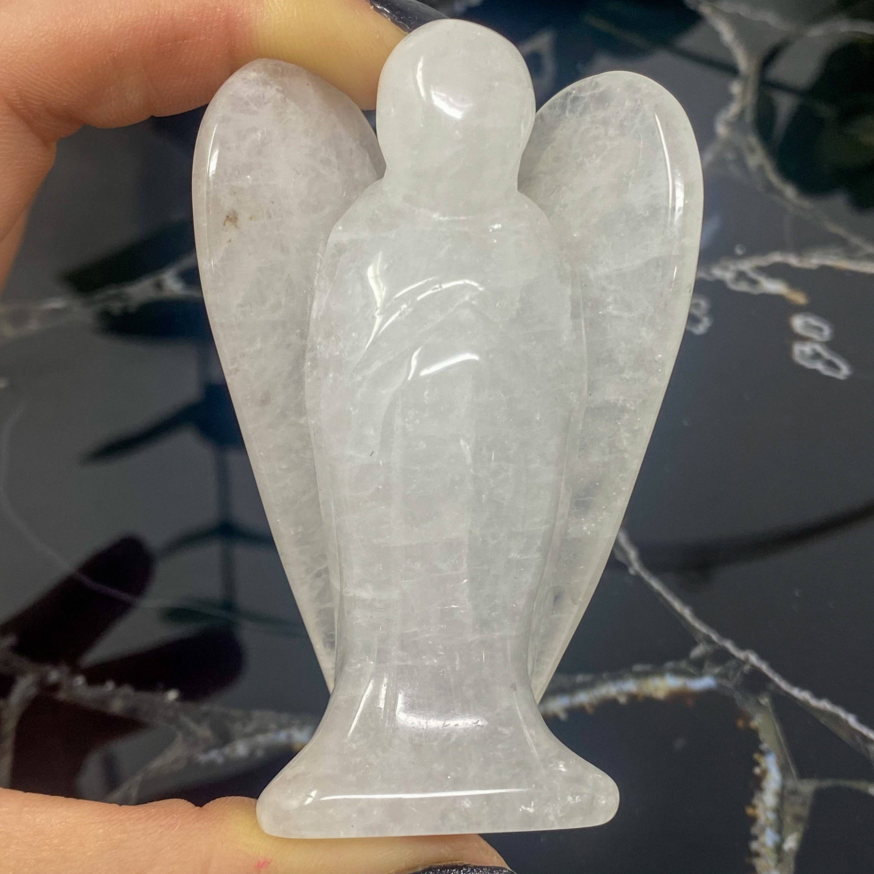 This is for 1 lot of 6 small Opalite quartz angels. Opalite is a man-made glass stone. Opalite is a synthetic opalescent glass that imitates natural opals which is mainly composed of glass, resin, and sometimes metals. The color shifts varies from blues, yellows and pinks. * Size: 1.5 inches each * Country of origin: Brazil * Shipping calculated after checkout *Pieces will vary from actual photograph.