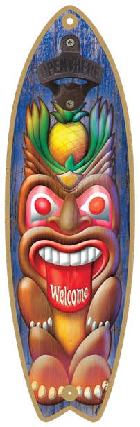 Wood carved tiki mask with hand-painted design. Product is made of Wood. Product dimensions are 11 x 19.75 x 2.25.