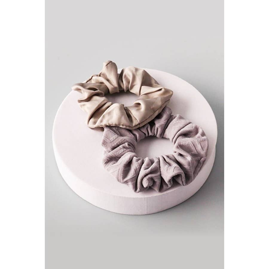 The softest scrunchie yet! Pictures don't do this justice! This beautiful shade is a muted purple with a hint of brown. Our scrunchies are made from the highest quality, locally sourced, ethically made, fabrics. You should feel good knowing your accessories have been loved every step of the way! Oeko-Tex® Standard 100 66% Rayon From Bamboo, 28% Cotton, 6% Spandex Recommended care: Hand or machine wash cold. Hang to dry.  The colour may not be exactly as seen on computer screen due to various screen calibrations. Pattern placement may vary as well.