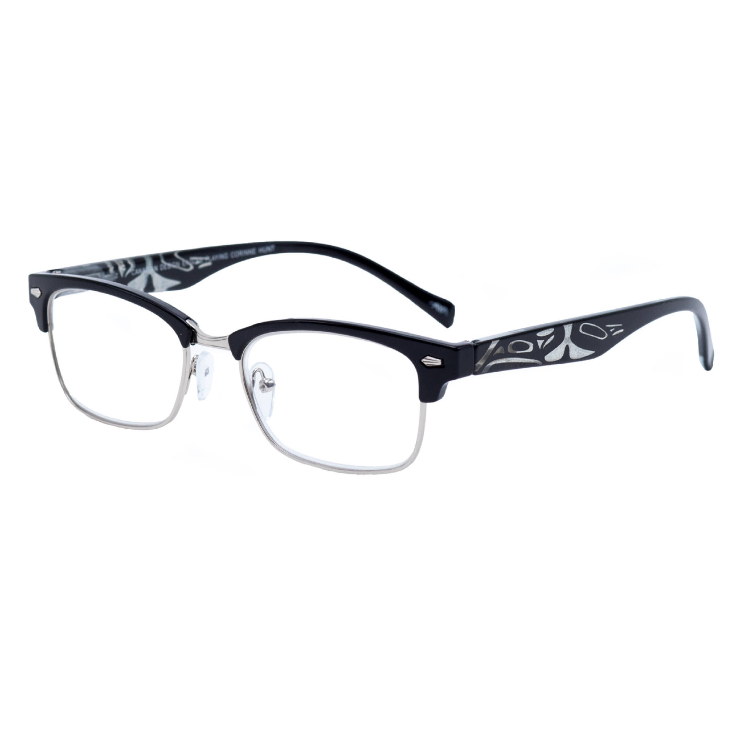 The Teagan reading glasses are unisex, fun and fashionable. They feature a bold bear design on the temples. Spring hinges have been incorporated into the design for extra comfort. The Bear symbolizes family, romance, longevity, harmony, travel, community and protection. Teagan is available in a duotone demi with turquoise and demi with black.