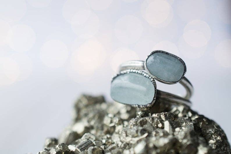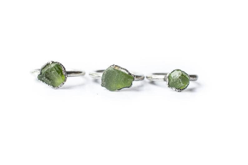 This listing is for one large emerald crystal electroformed to a hand-hammered 12 gauge recycled copper ring plated in gold. PLEASE NOTE: This is a limited run and pieces are only available while supplies last in the sizes listed in the drop-down menu. If your size is unavailable, please select “custom” from the drop down menu and indicate the size you need at check out. These are finished products and cannot be altered. Our jewelry is unique and one-of-a-kind. Please note there will likely be variances in the size, shape and color of each stone. Our jewelry is unique and one-of-a-kind. Please note there will likely be variances in the size, shape and color of each stone. All elements of your piece are handcrafted in our tiny studio on the island of Martha’s Vineyard. We sell our packaging! Find it here: https://www.faire.com/product/p_8os914jvdz