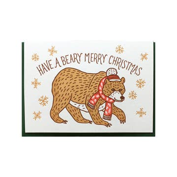 Bear with Santa Hat LETTERPRESS CARD