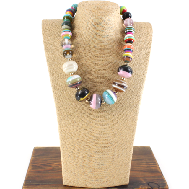 Berry/Teal/Light Gray 3 Strand Mop Necklace