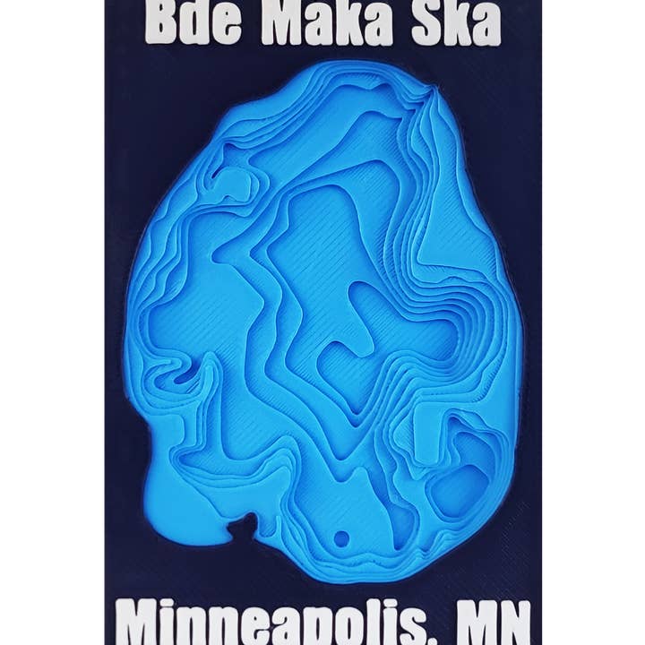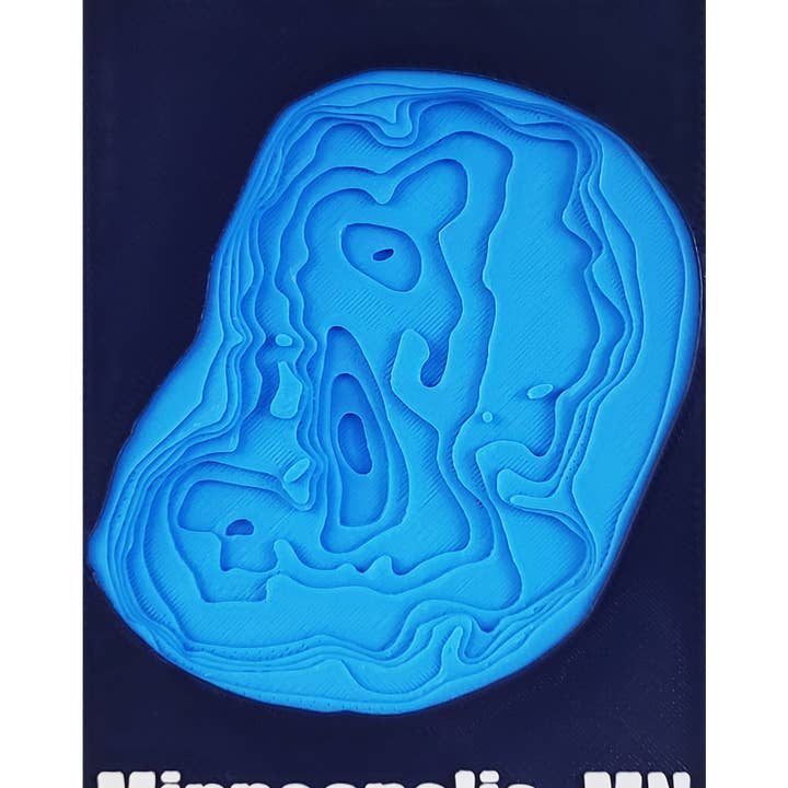 Blue topographic 3D printed magnetic map of Boom Lake in Rhinelander, WI