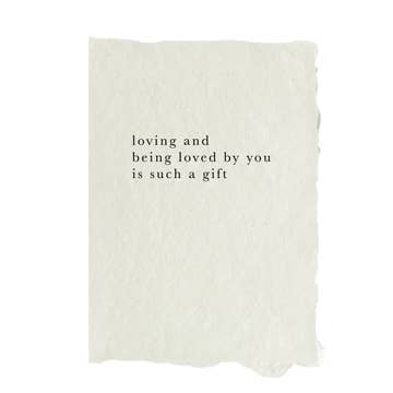 This adorable mini greeting card is the perfect way to express your big love for someone special. The pearlescent grey cardstock is elegant and understated, while the gold metallic foil lettering adds a touch of luxury. The phrase "that big love thing" is simple yet meaningful. Sure to make the recipient smile. Perfect for any occasion; anniversaries, Valentine's Day and weddings. A great choice for your husband or wife. The petite size and competitive price point make this card a wonderful add-on purchase for your independent gift shop. Material: pearlescent grey card Finishes: metallic gold foil Envelope colour: slate grey