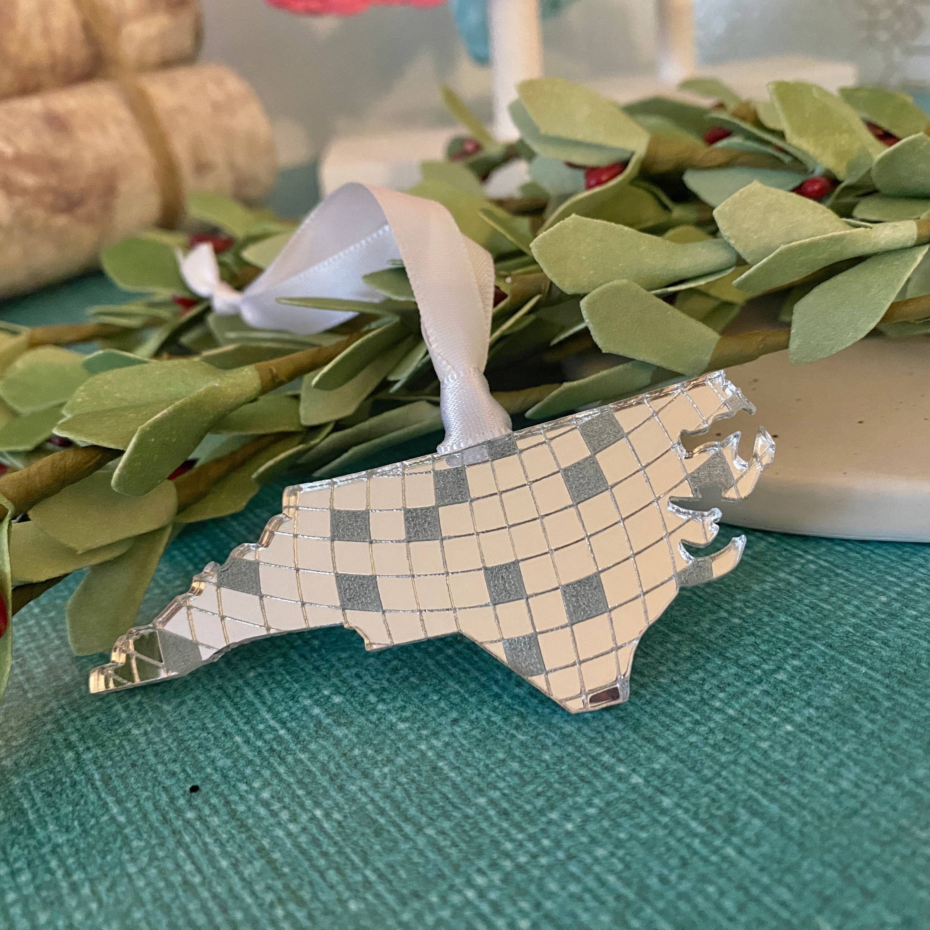 Did you know the state fossil of North Carolina is the Megalodon tooth? Have you ever been lucky enough to find one washed up on one of NC's beautiful beaches? Despite having lived in the shallow NC waters 23 to 2 million years ago, the fossils, which can reach up to 7 inches long, are actually fairly common to find! Another reason to visit a North Carolina beach! Crafted from your choice of wood, this circular ornament pays tribute to the most massive shark that ever lived. Ornament measures 3" in diameter and comes with your choice of ribbon color. Shop the entire collection of NC state symbol ornaments.