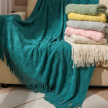 Throw Wool Light Weight Solid Color with Pompom