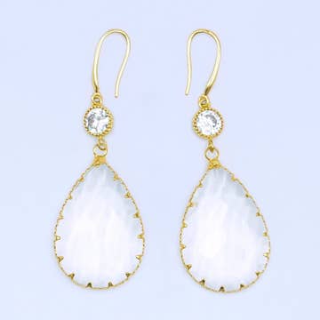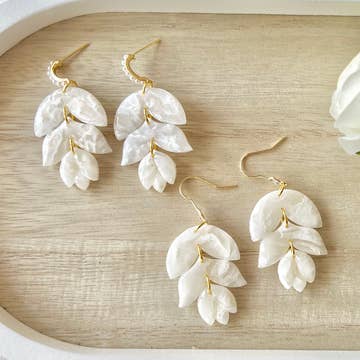 Handmade shimmery pearl white polymer clay earrings with textured detail & gold cubic zirconia charm Surgical steel stud closure Hypoallergenic metal - free of nickel & lead Clay earrings are lightweight & comfortable enough for all-day wear Due to handmade nature, slight imperfections and differences may occur in each pair of earrings *photo by Staci and Michael Photography*