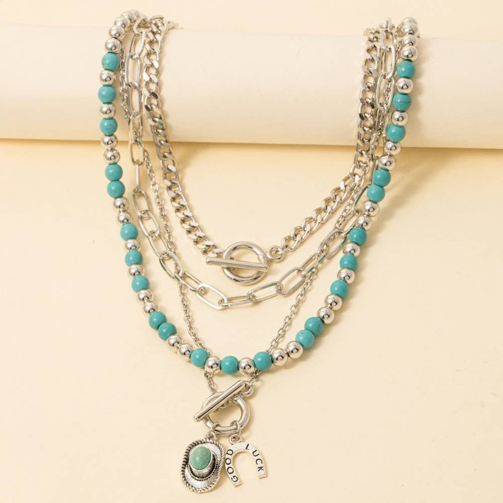 Stunning southwestern squash blossom pendant with natural stone statement necklace and lobster clasp closure *Zinc, Composite Stone *Nickel/Lead Compliant *Approx. L 30" Ext. 3" Pendant L 3.50" W 2.75" 2.89oz *Imported
