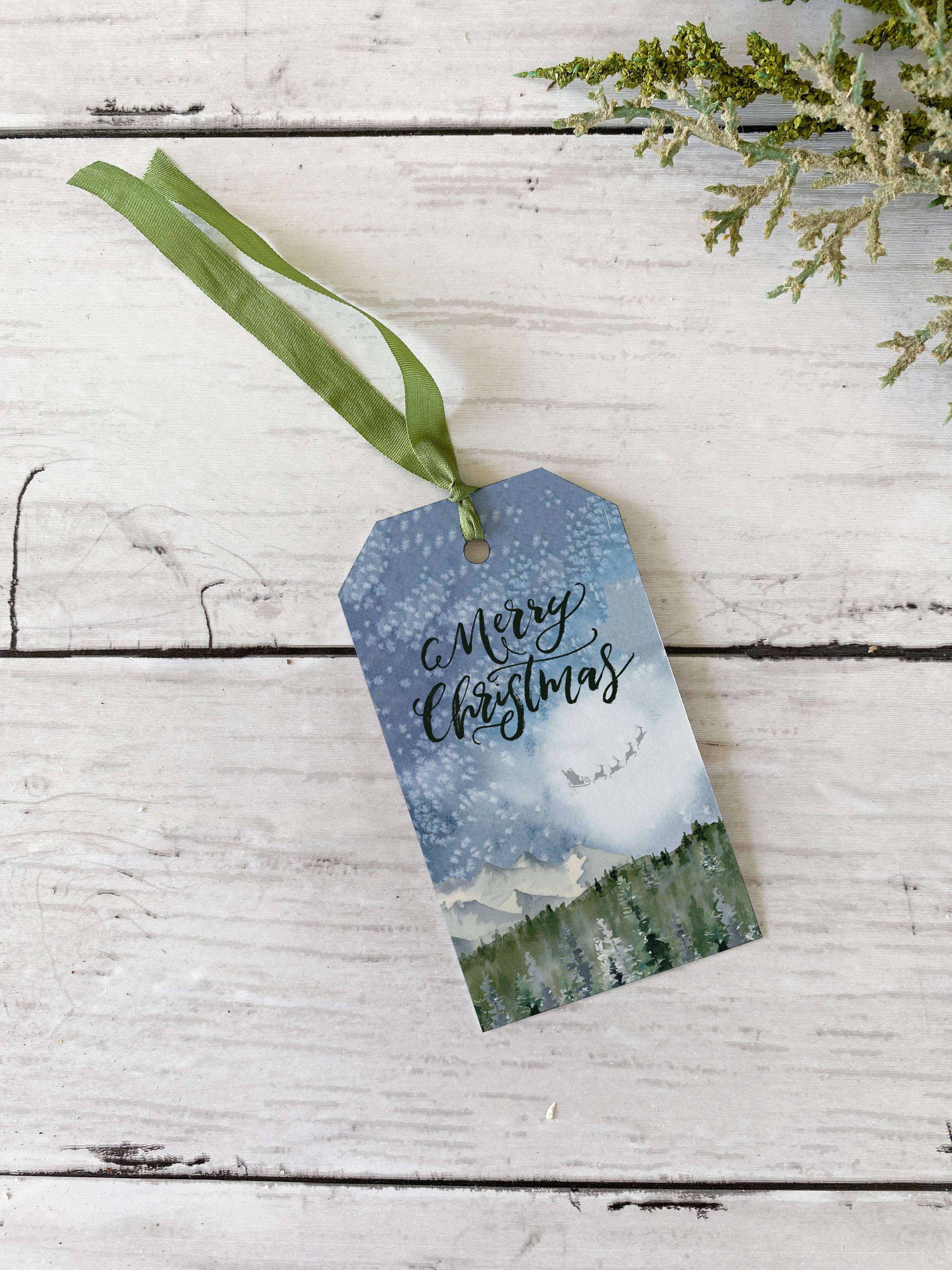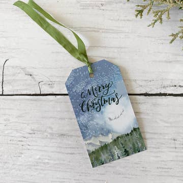 Joy pine gift tags will decorate your gifts with true Christmas charm. Size: 2”x3.5” Paper: smooth bright white Additional Notes: set of 6 tags each with a cotton string